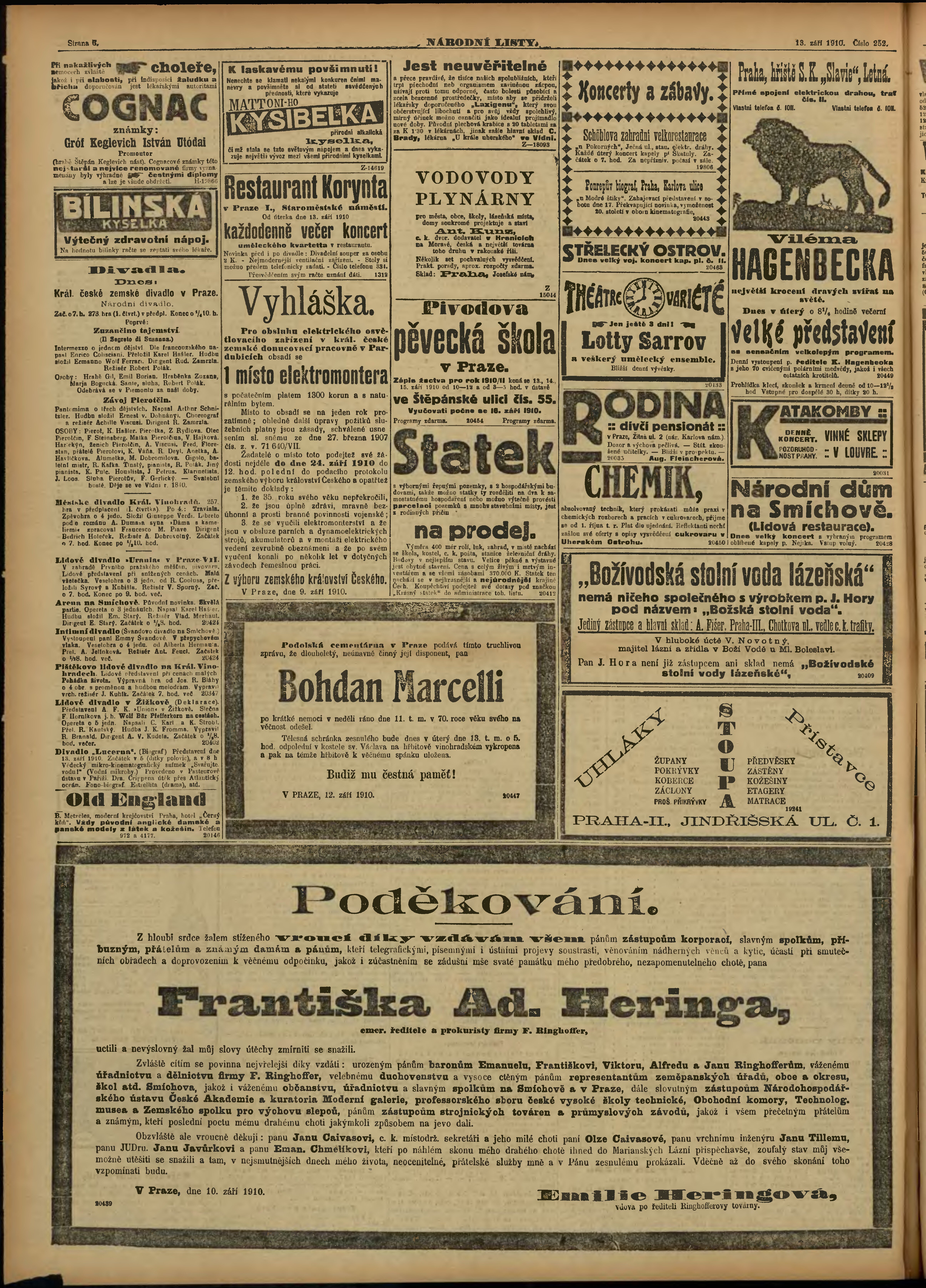* Datum vydání výtisku: 13.9.1910 Číslo výtisku: 252 Poznámky k výtisku: ranní vydání;