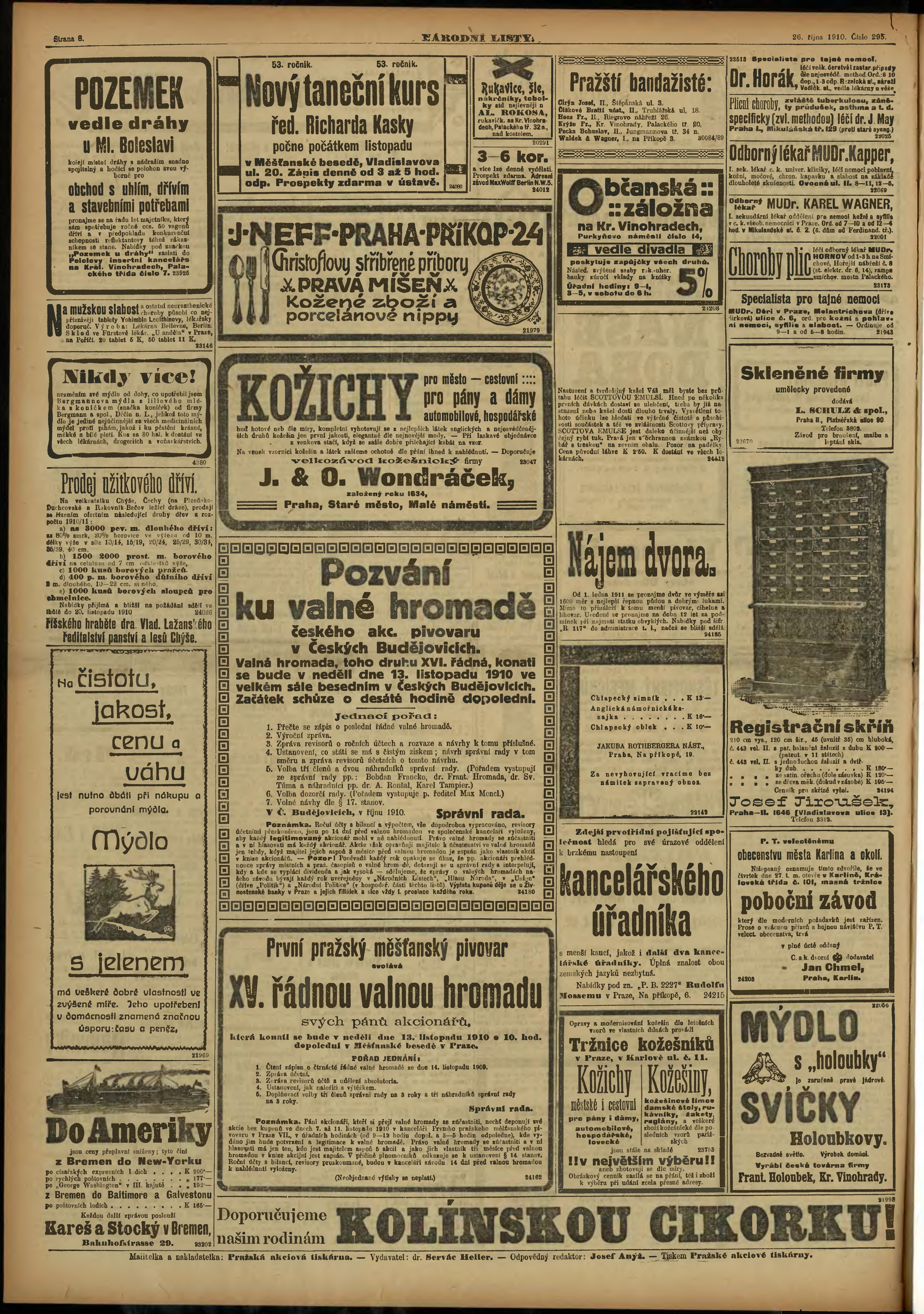 * Datum vydání výtisku: 26.10.1910 Číslo výtisku: 295 Poznámky k výtisku: ranní vydání;