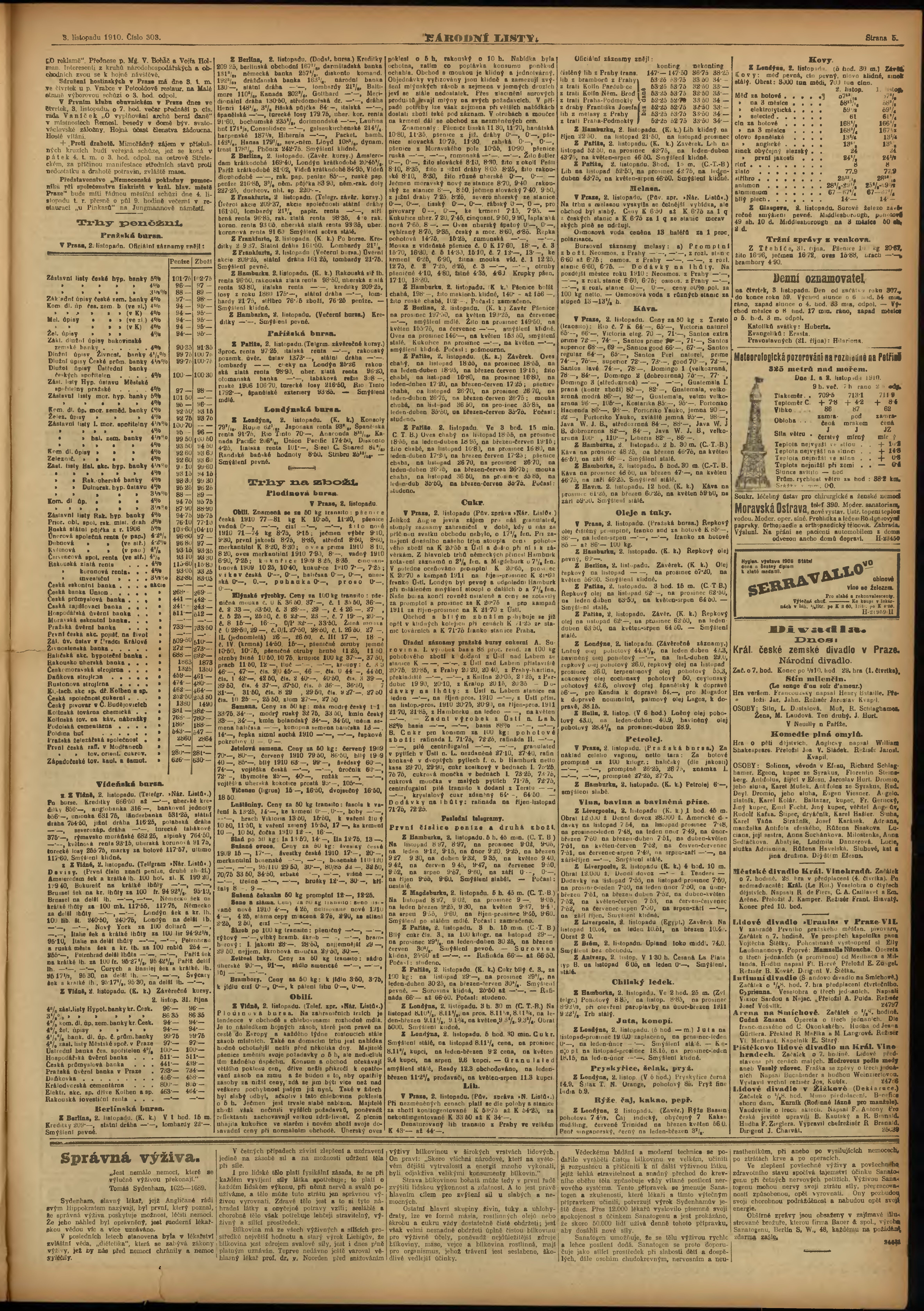 * Datum vydání výtisku: 3.11.1910 Číslo výtisku: 303 Poznámky k výtisku: ranní vydání;