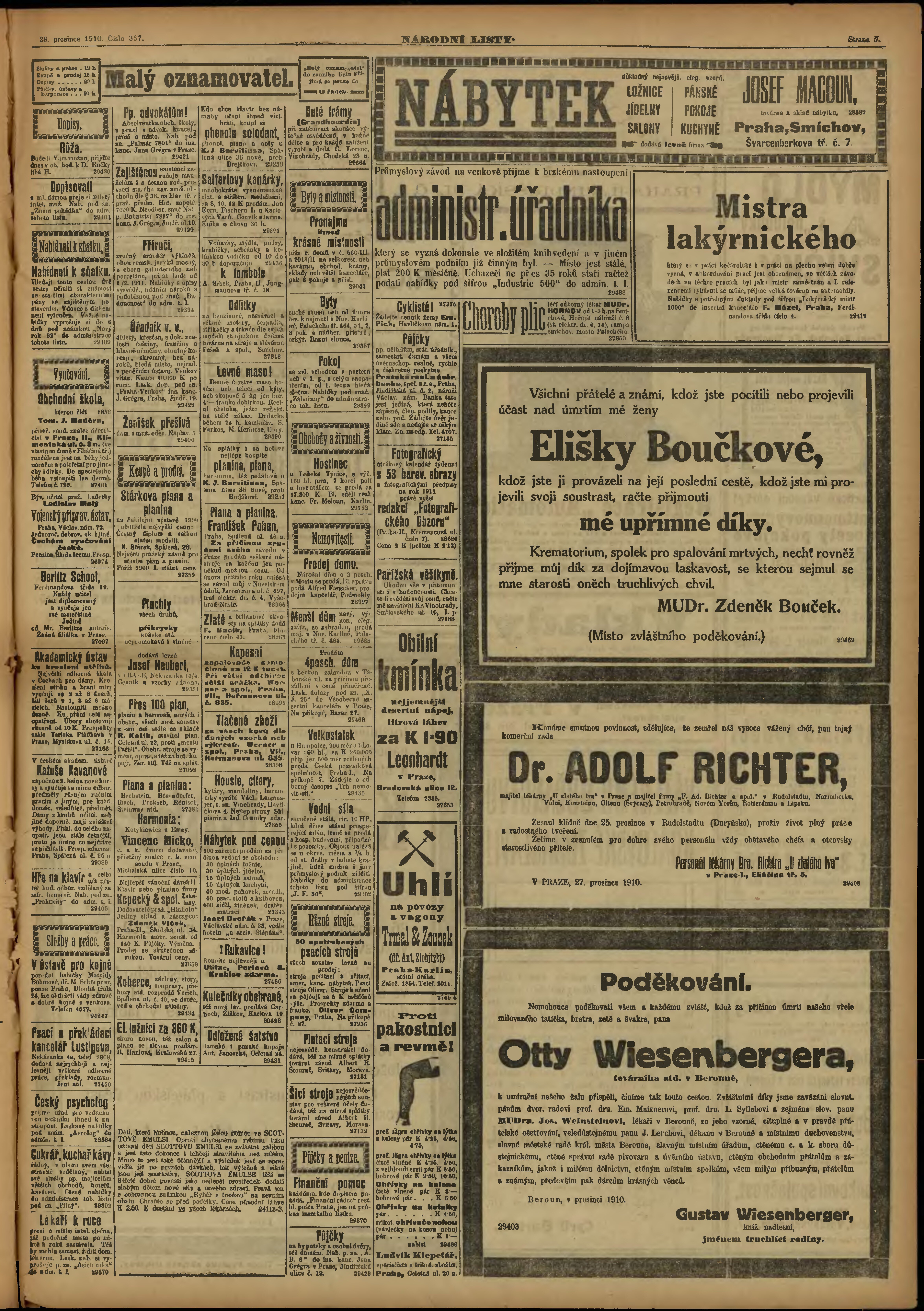* Datum vydání výtisku: 28.12.1910 Číslo výtisku: 357 Poznámky k výtisku: ranní vydání;