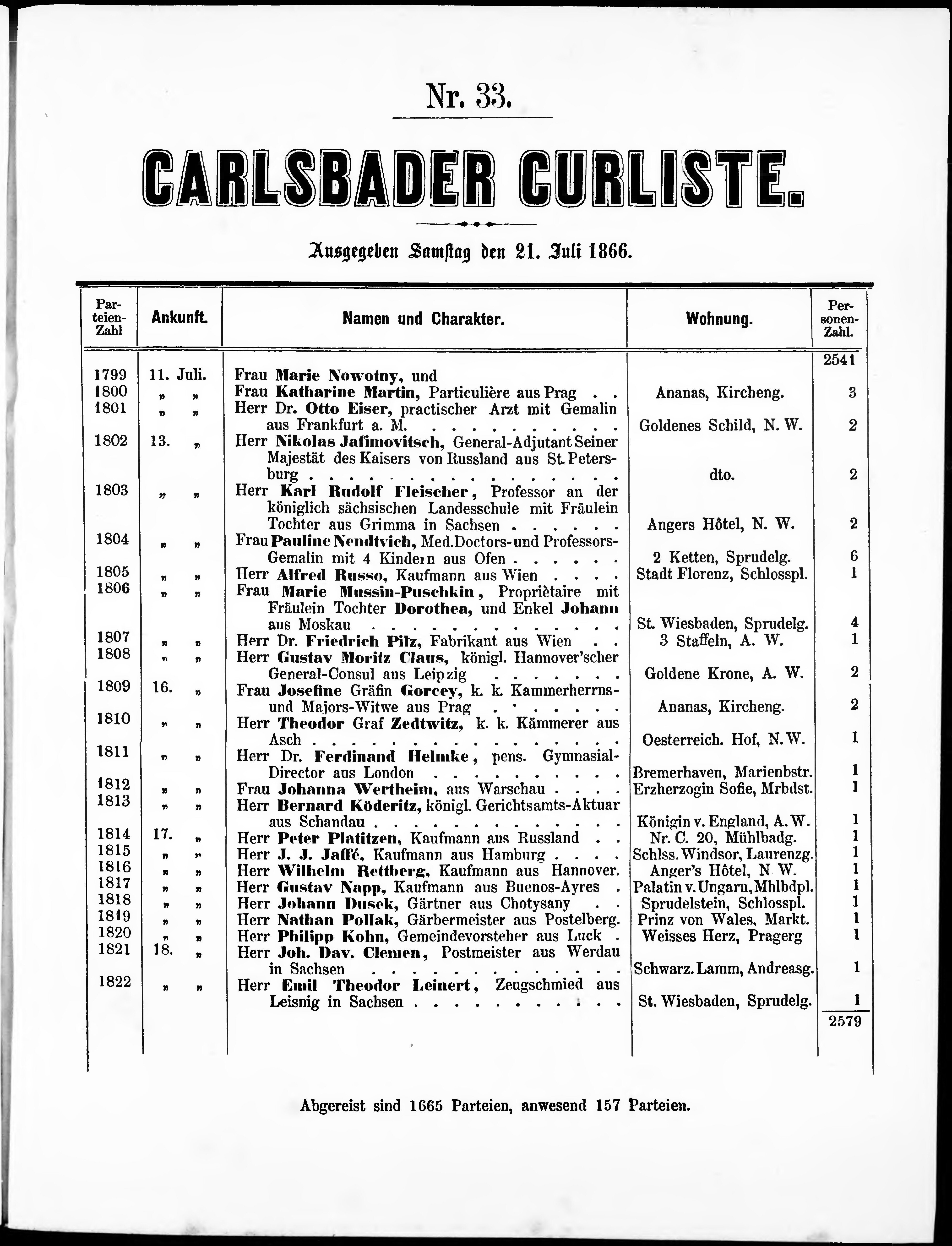 Liste der im Jahre ... angekommenen und abgereisten Kur- und Badegäste in Karlsb...