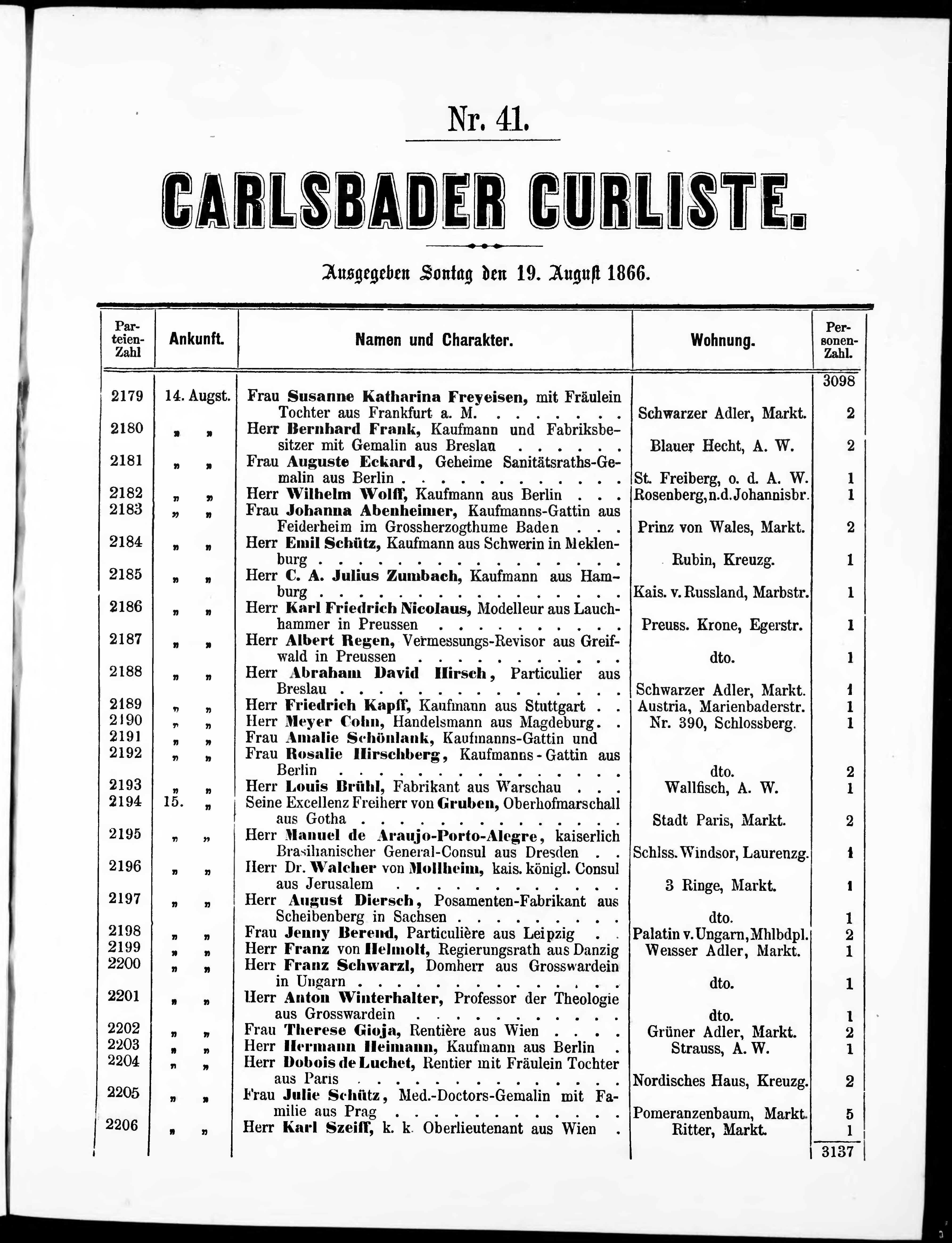 Liste der im Jahre ... angekommenen und abgereisten Kur- und Badegäste in Karlsb...