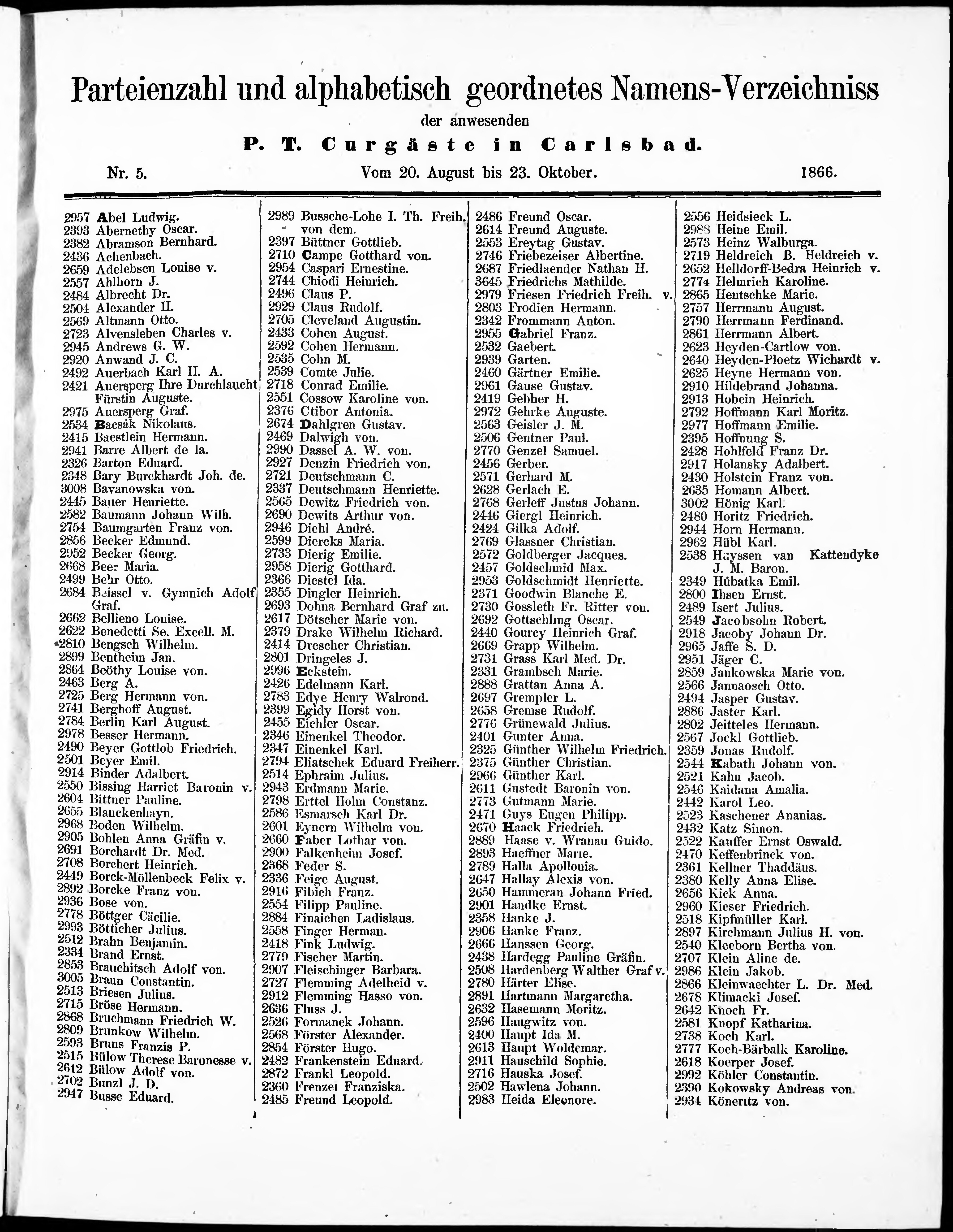 Liste der P.T. Curgäste in Carlsbad ...