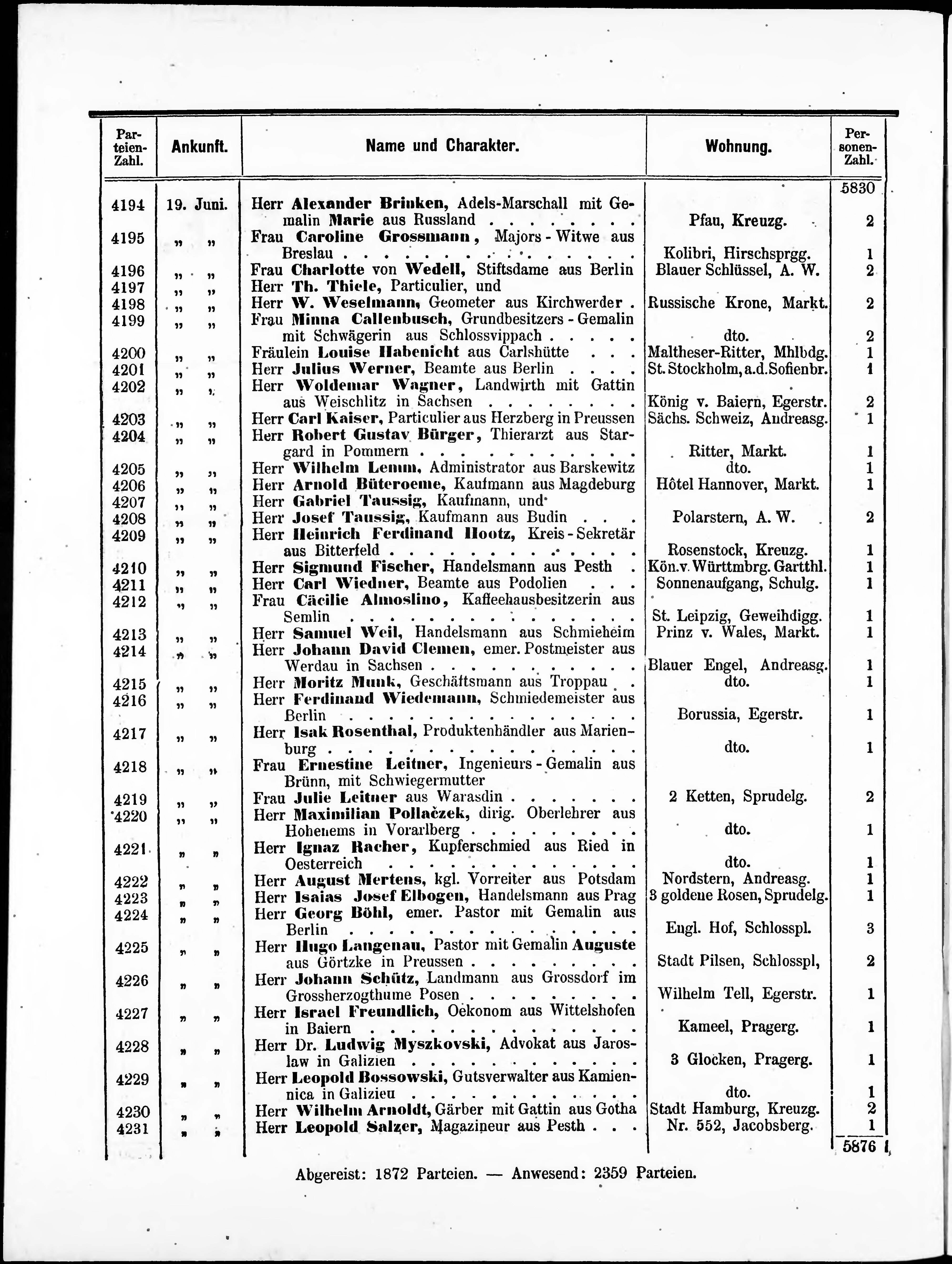 Liste der im Jahre ... angekommenen und abgereisten Kur- und Badegäste in Karlsb...