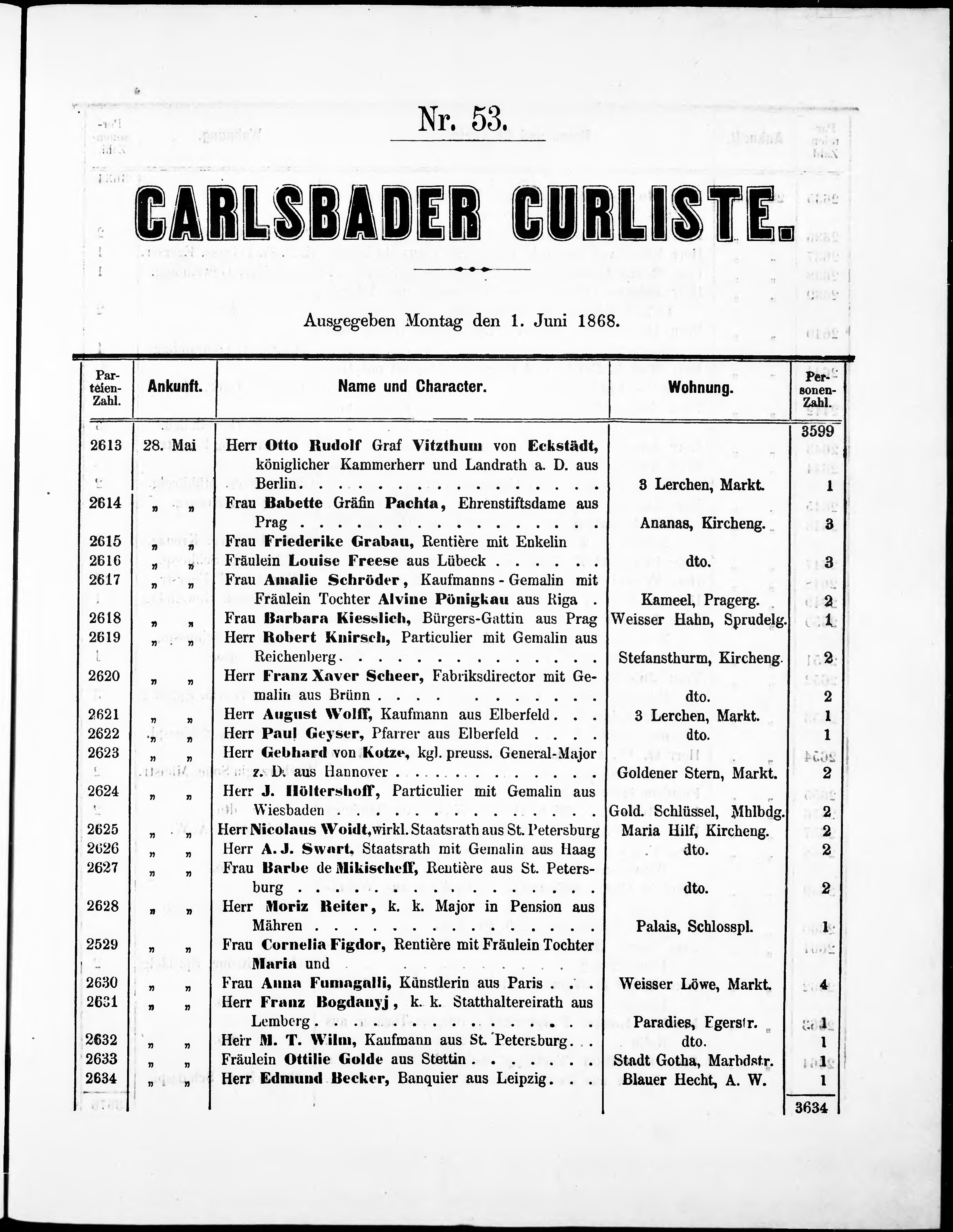Liste der P.T. Curgäste in Carlsbad ...