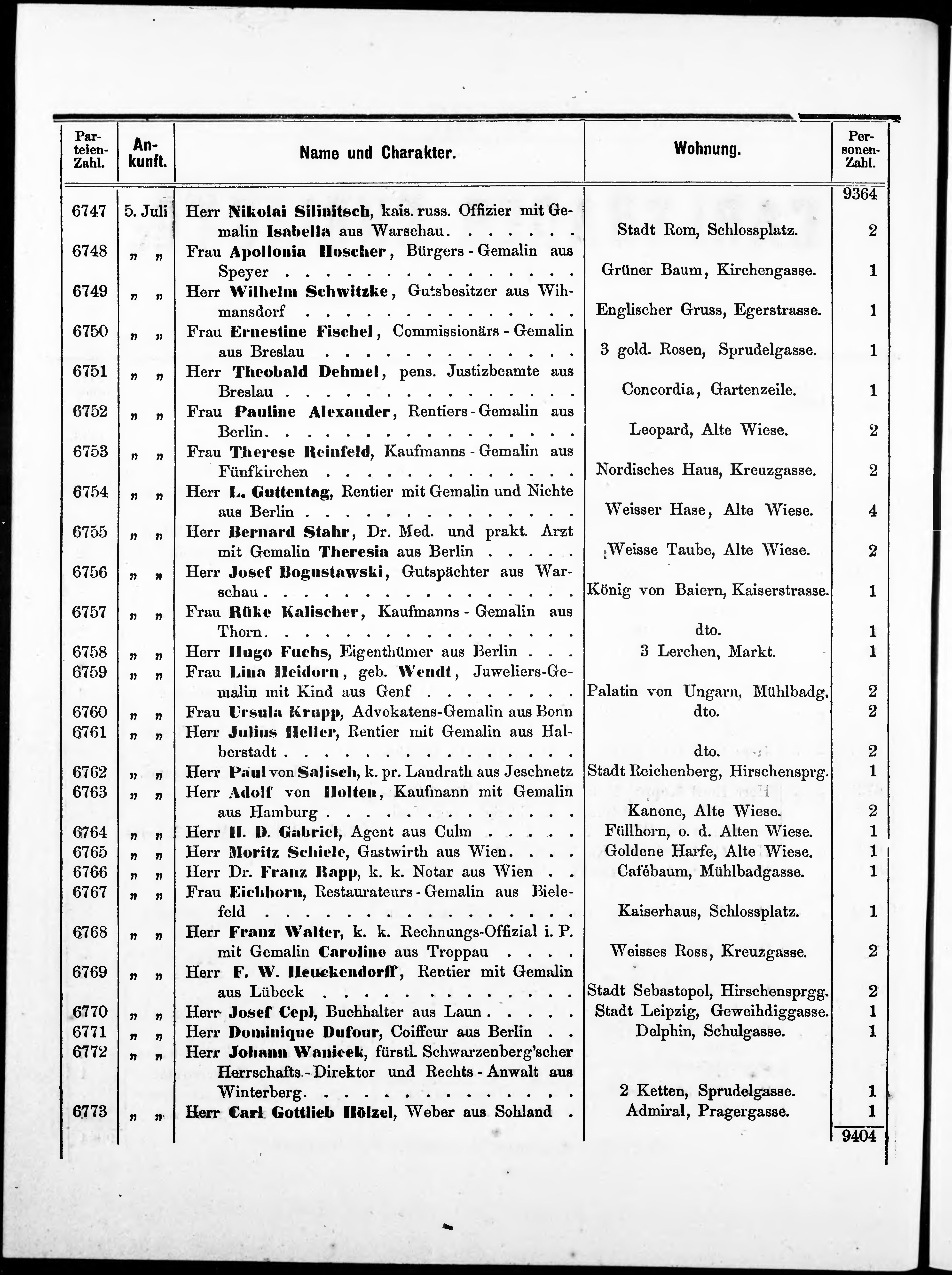 Liste der im Jahre ... angekommenen und abgereisten Kur- und Badegäste in Karlsb...