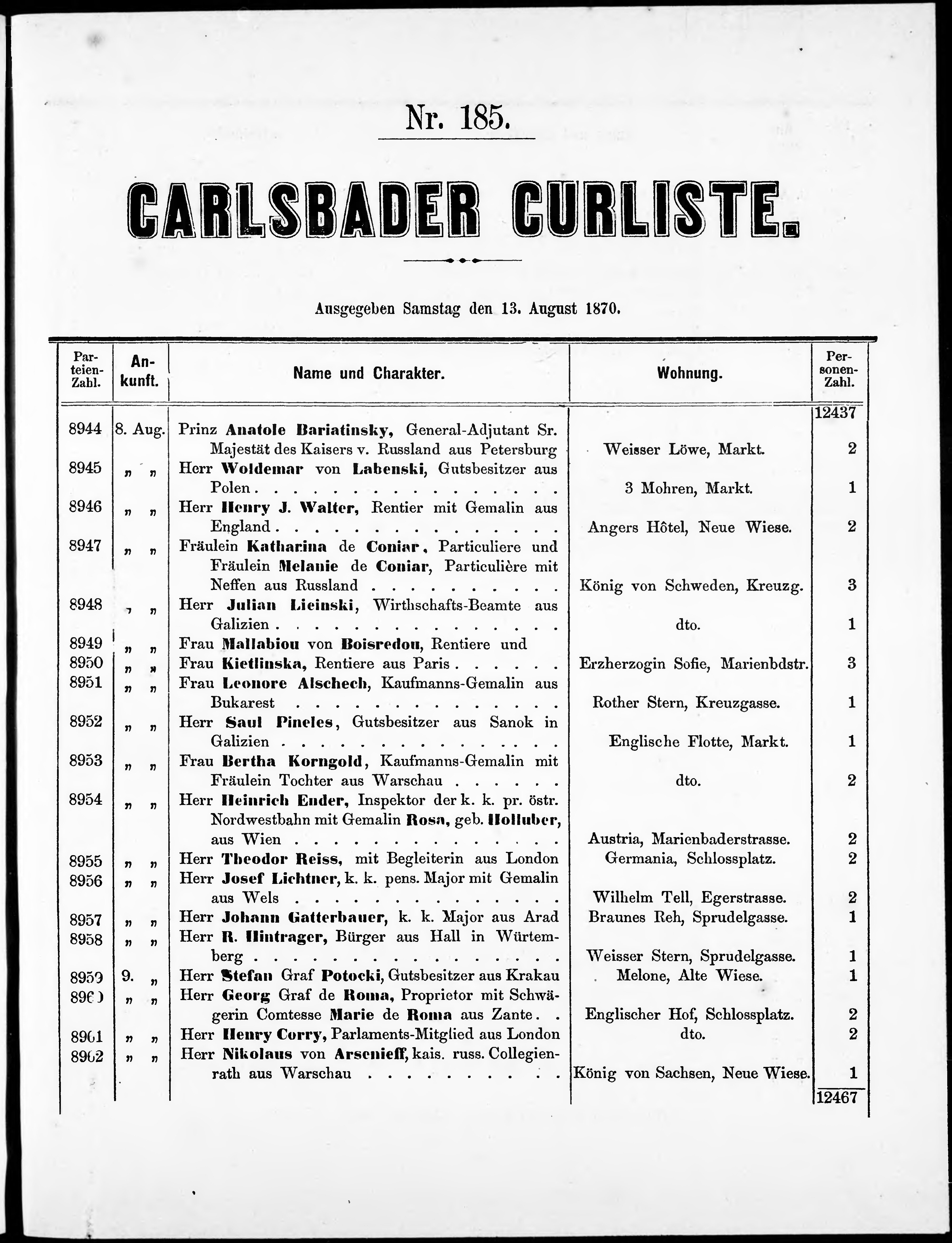 Liste der im Jahre ... angekommenen und abgereisten Kur- und Badegäste in Karlsb...