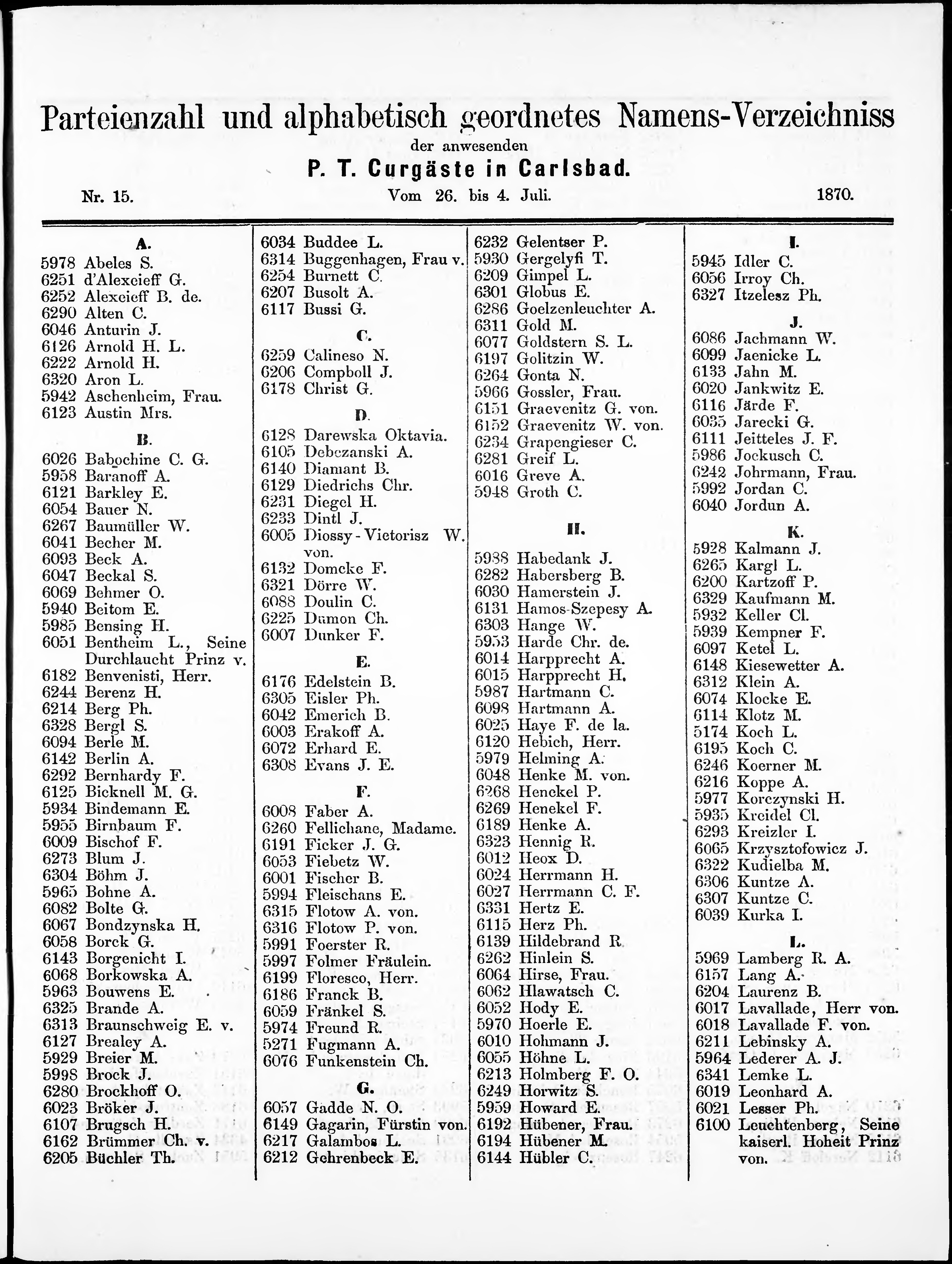 Liste der im Jahre ... angekommenen und abgereisten Kur- und Badegäste in Karlsb...
