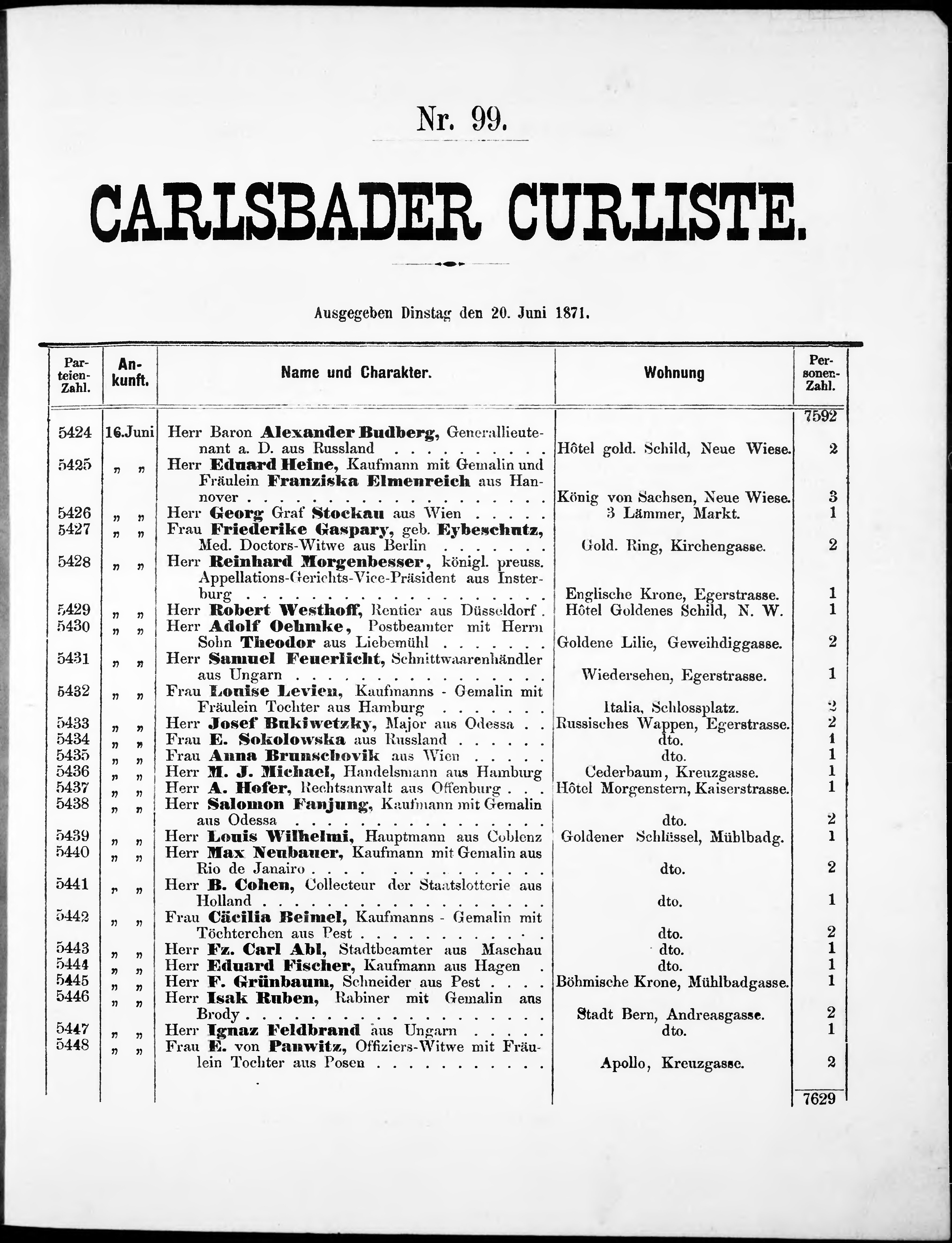 Liste der P.T. Curgäste in Carlsbad ...
