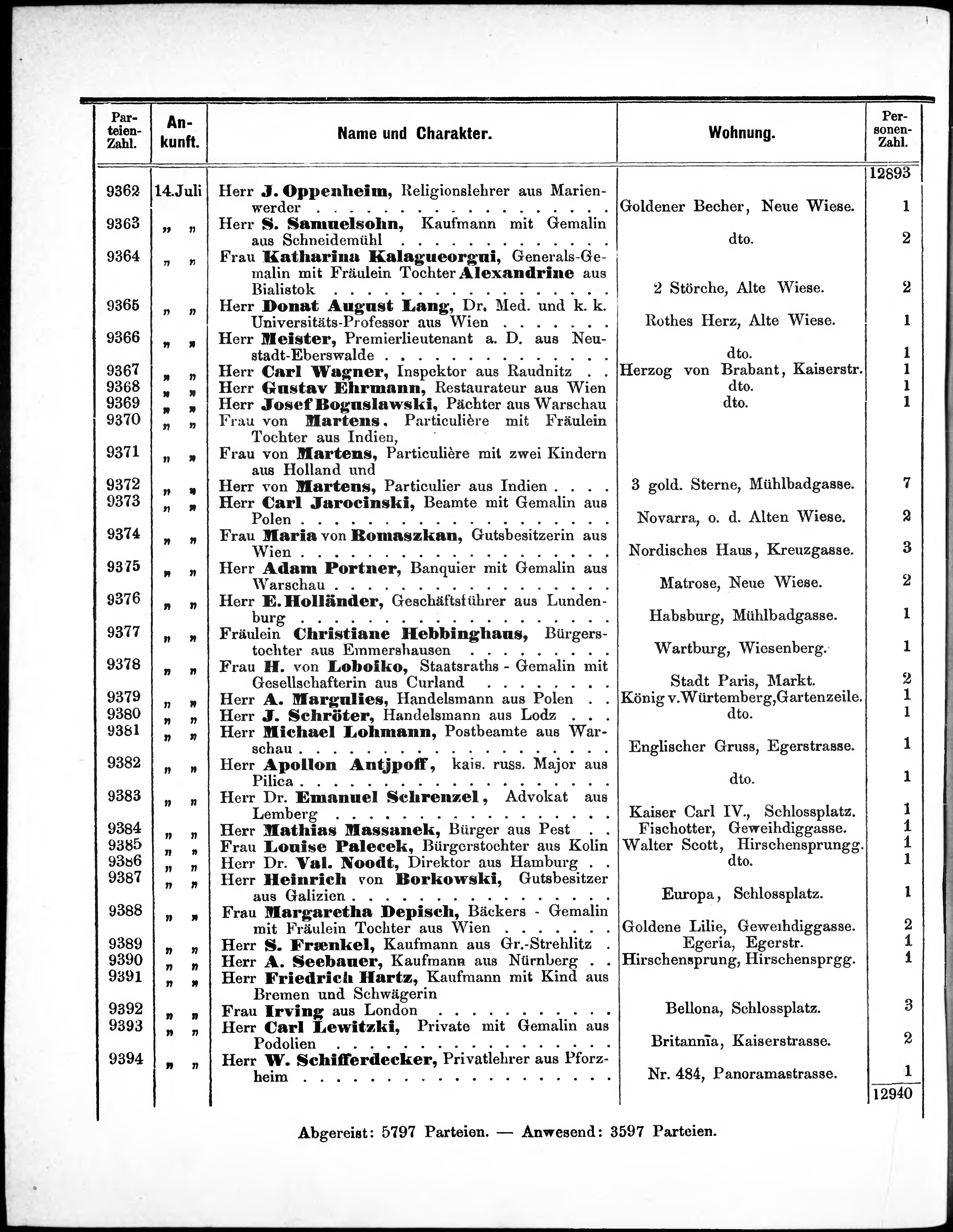 Liste der P.T. Curgäste in Carlsbad ...