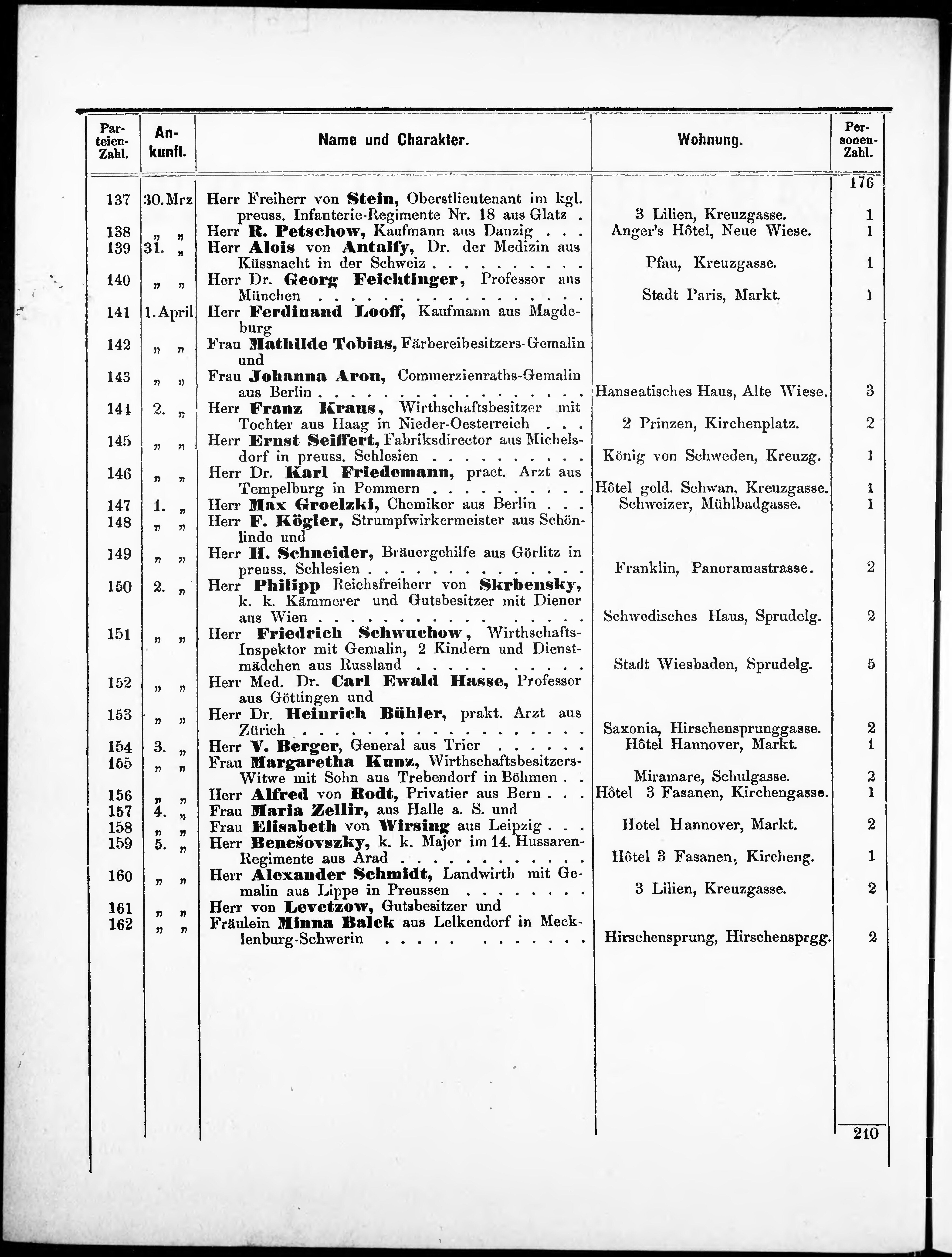 Liste der im Jahre ... angekommenen P.T. Kurgäste in der königl. Stadt Kaiser-Ca...