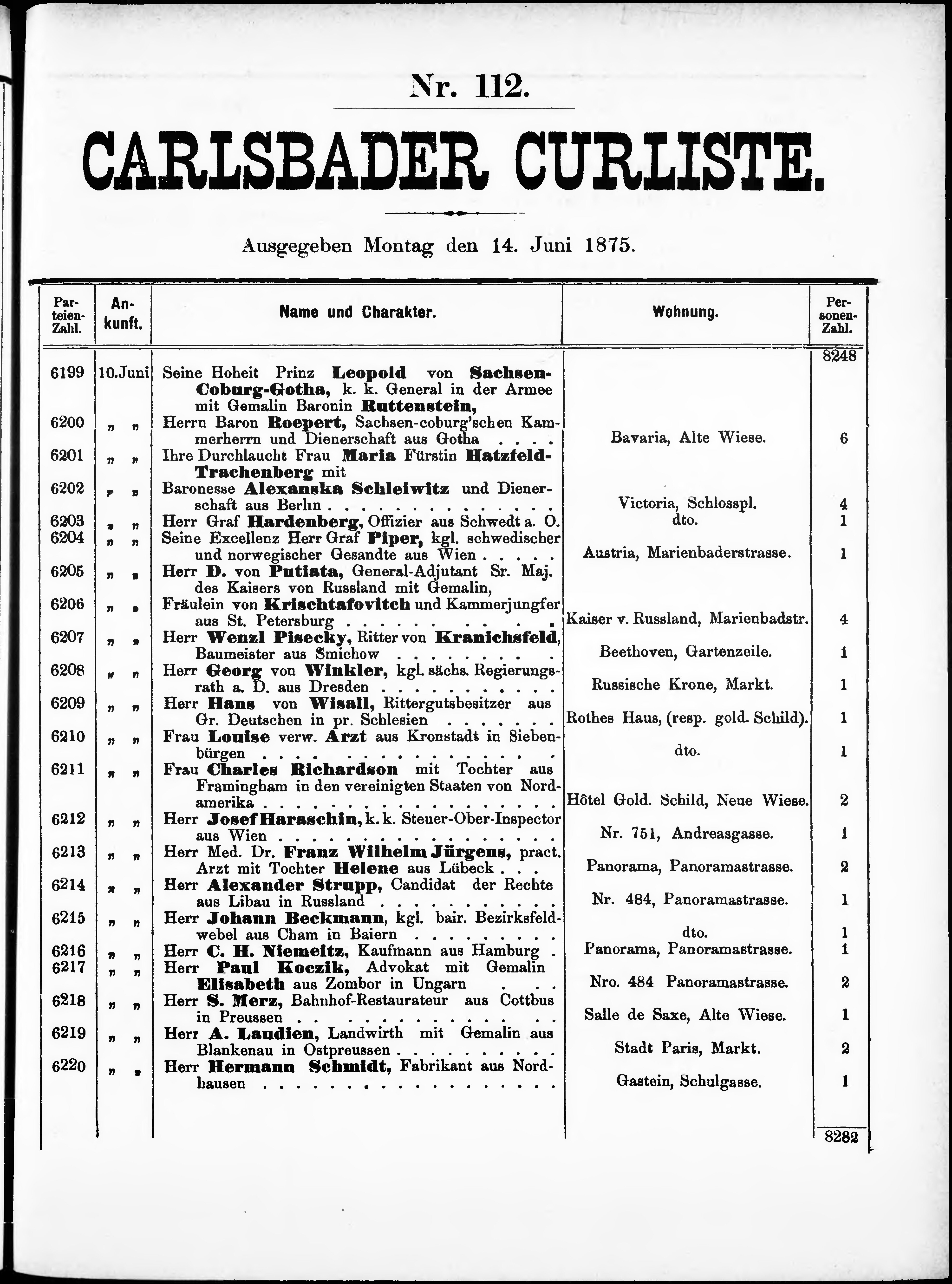 * Datum vydání výtisku: 14.6.1875 Číslo výtisku: 112