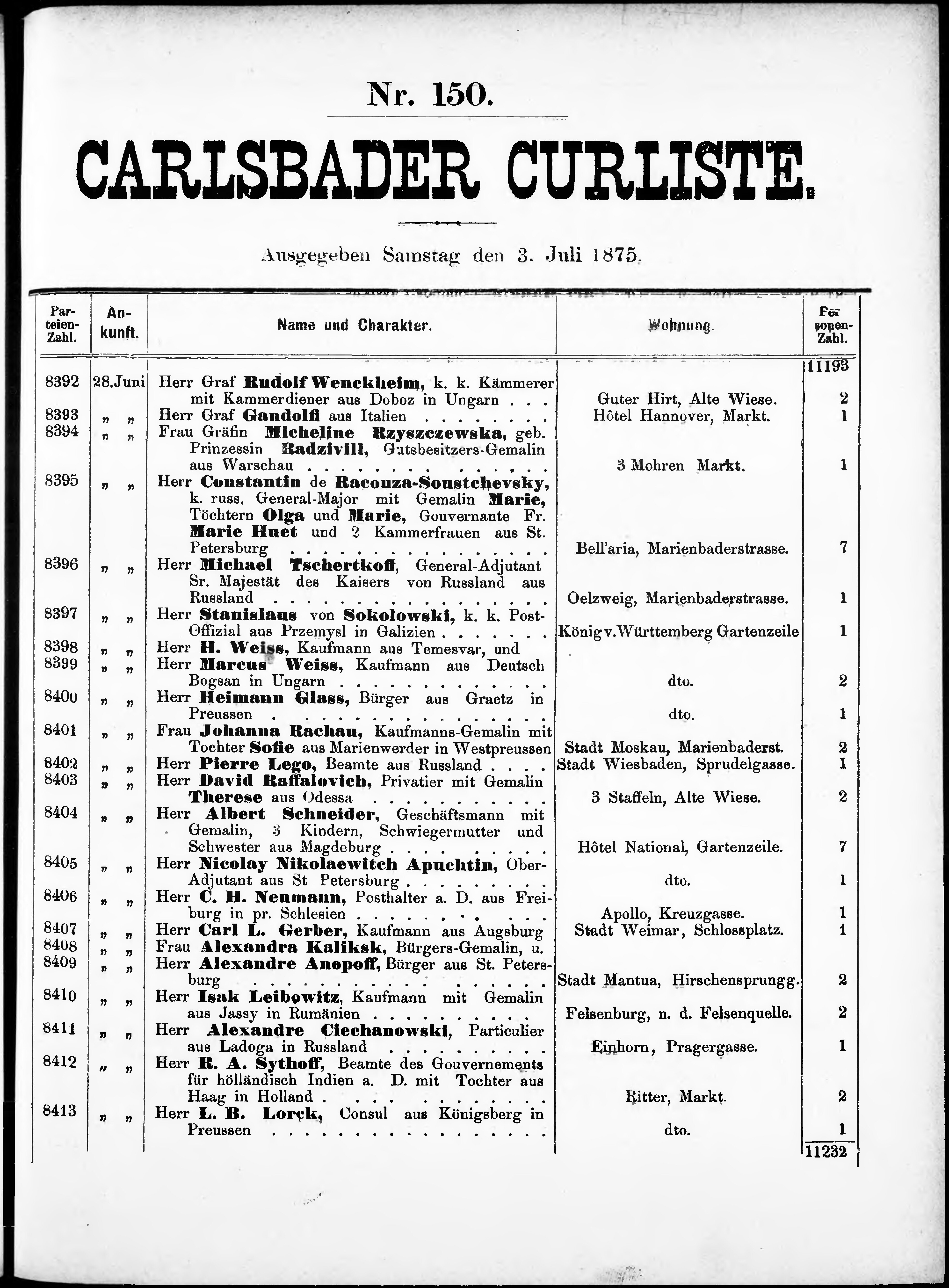 Liste der im Jahre ... angekommenen und abgereisten Kur- und Badegäste in Carlsb...