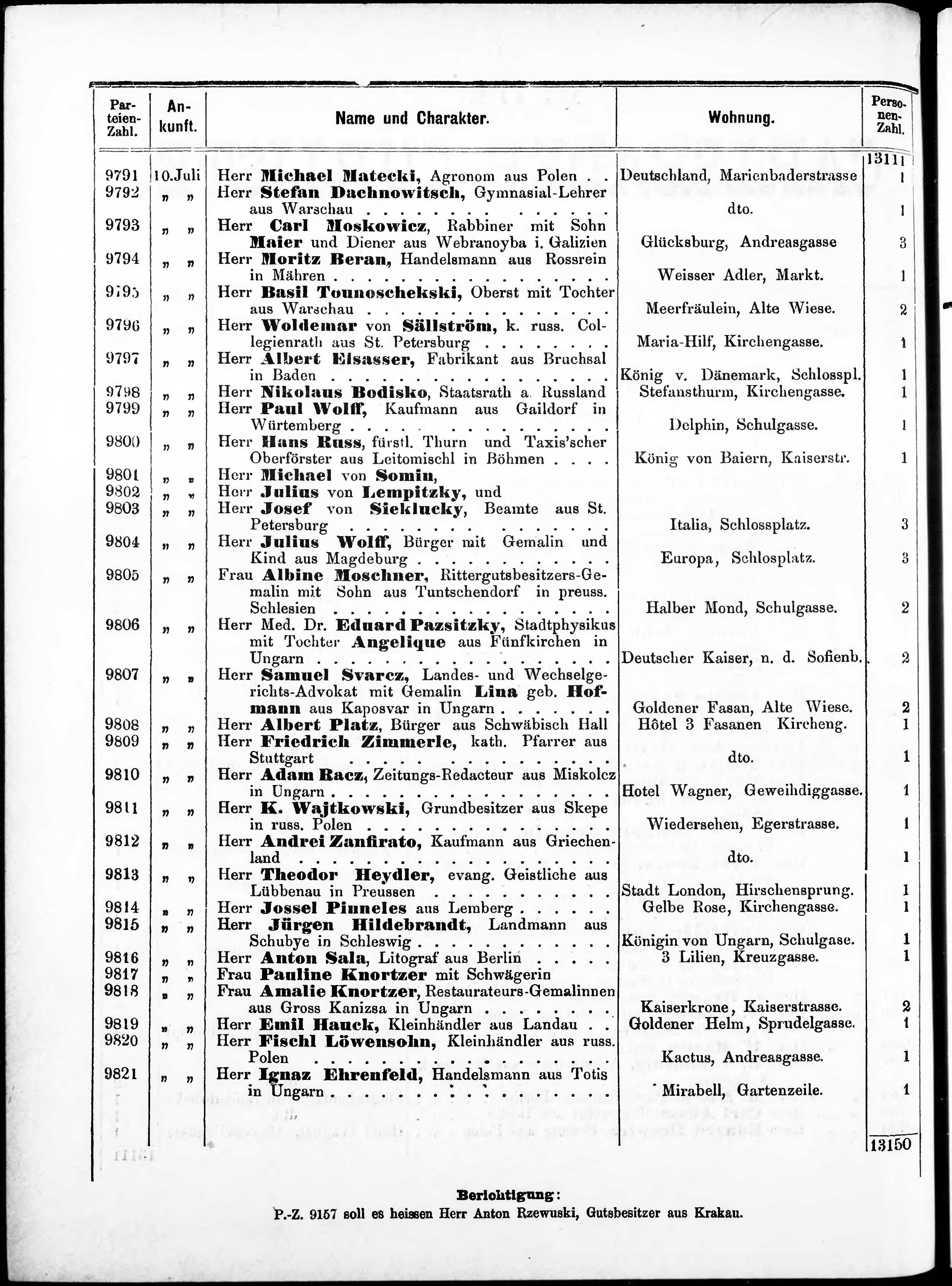 Liste der angekommenen und abgereisten P. T. Curgäste in Carlsbad im Jahre