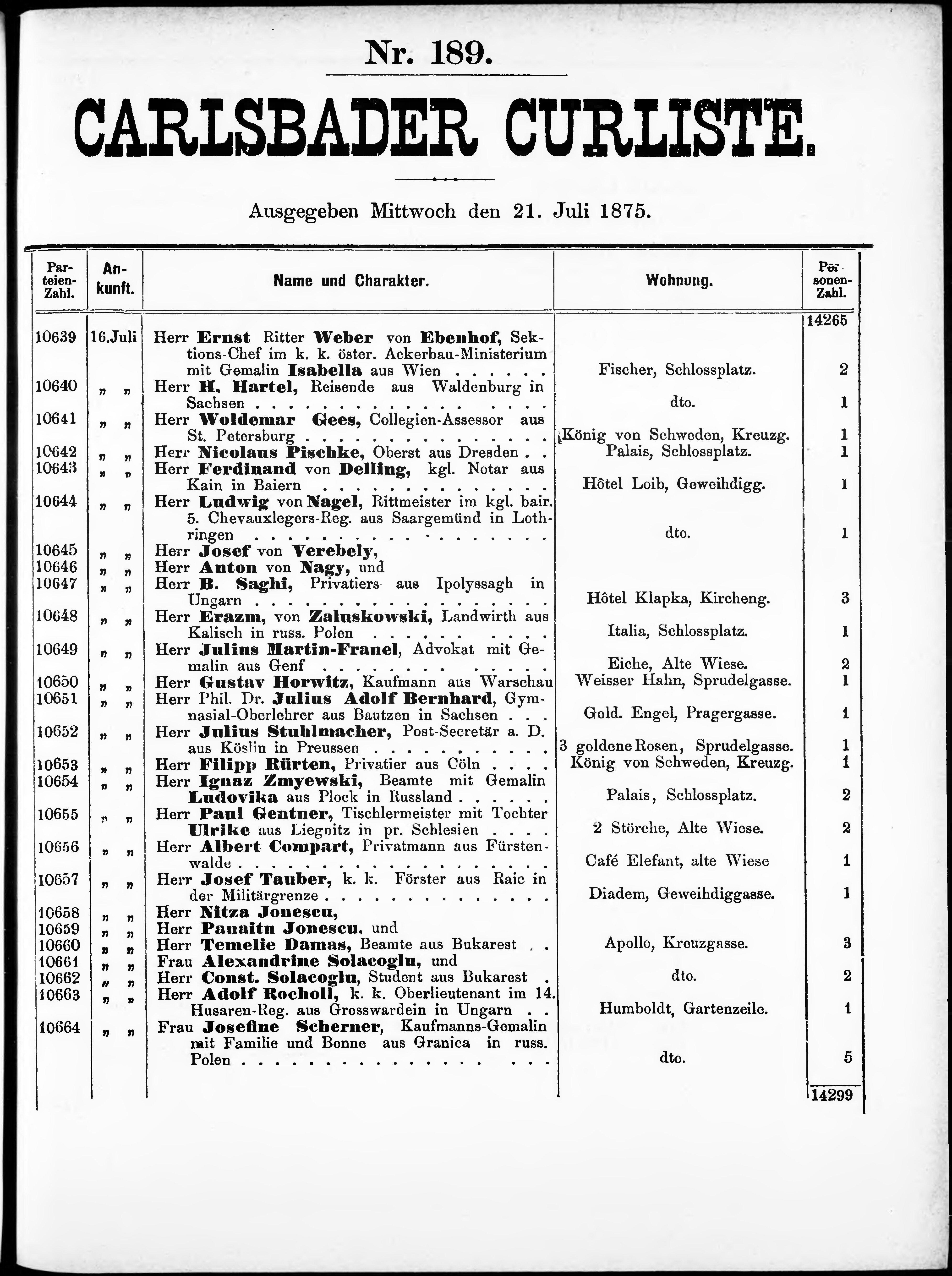 * Datum vydání výtisku: 21.7.1875 Číslo výtisku: 189