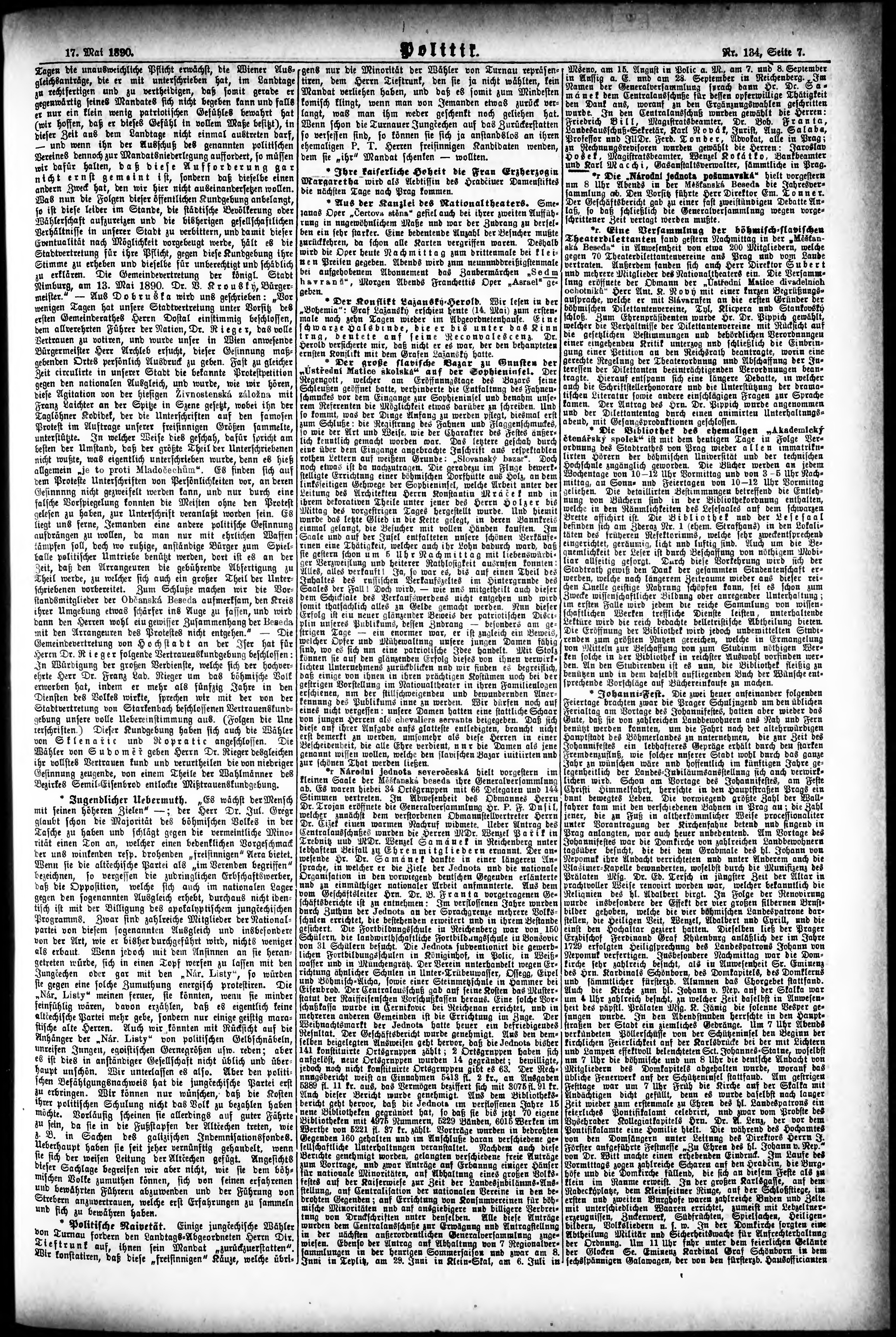 * Datum vydání výtisku: 17.5.1890 Číslo výtisku: 134
