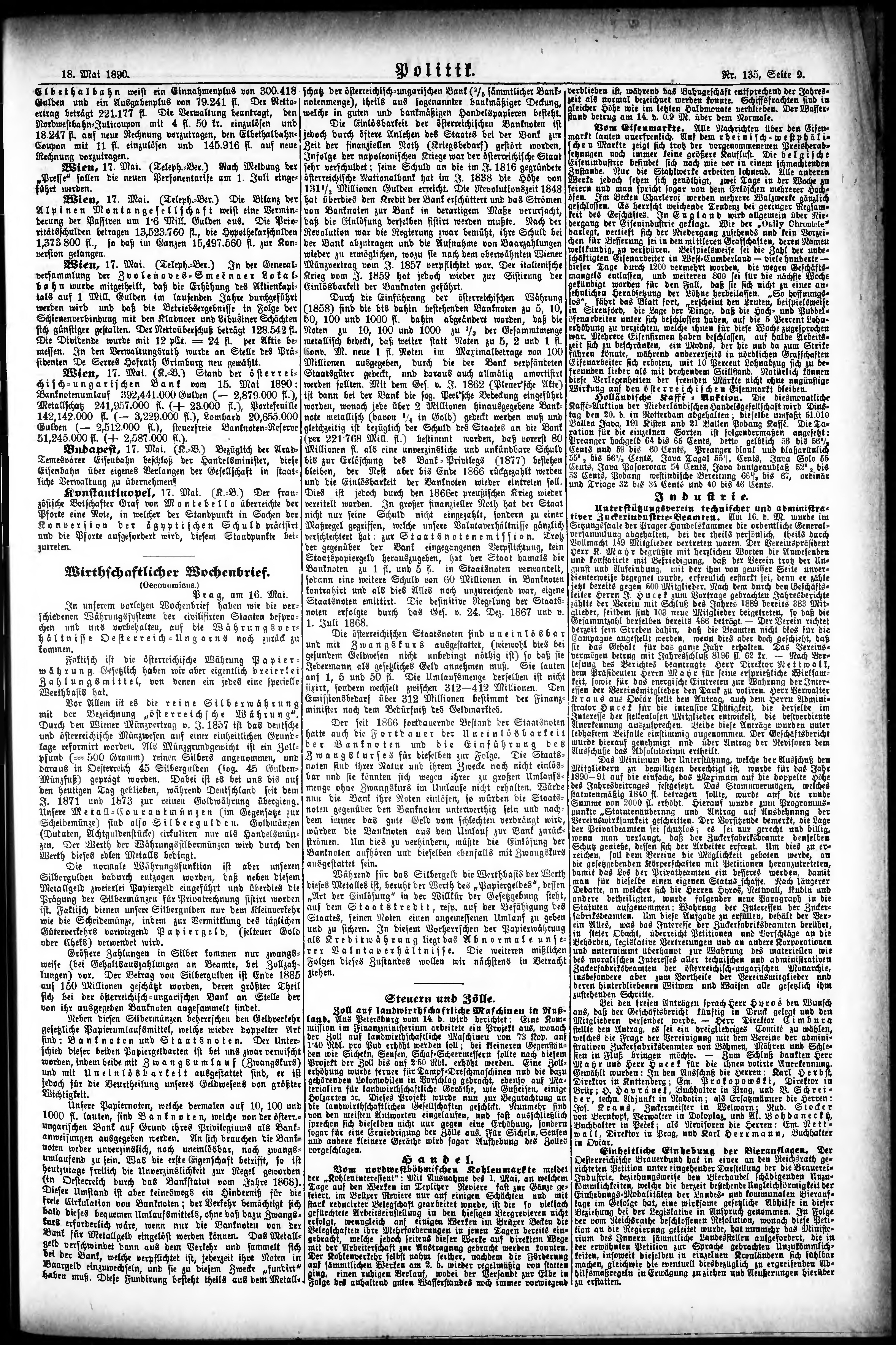 * Datum vydání výtisku: 18.5.1890 Číslo výtisku: 135