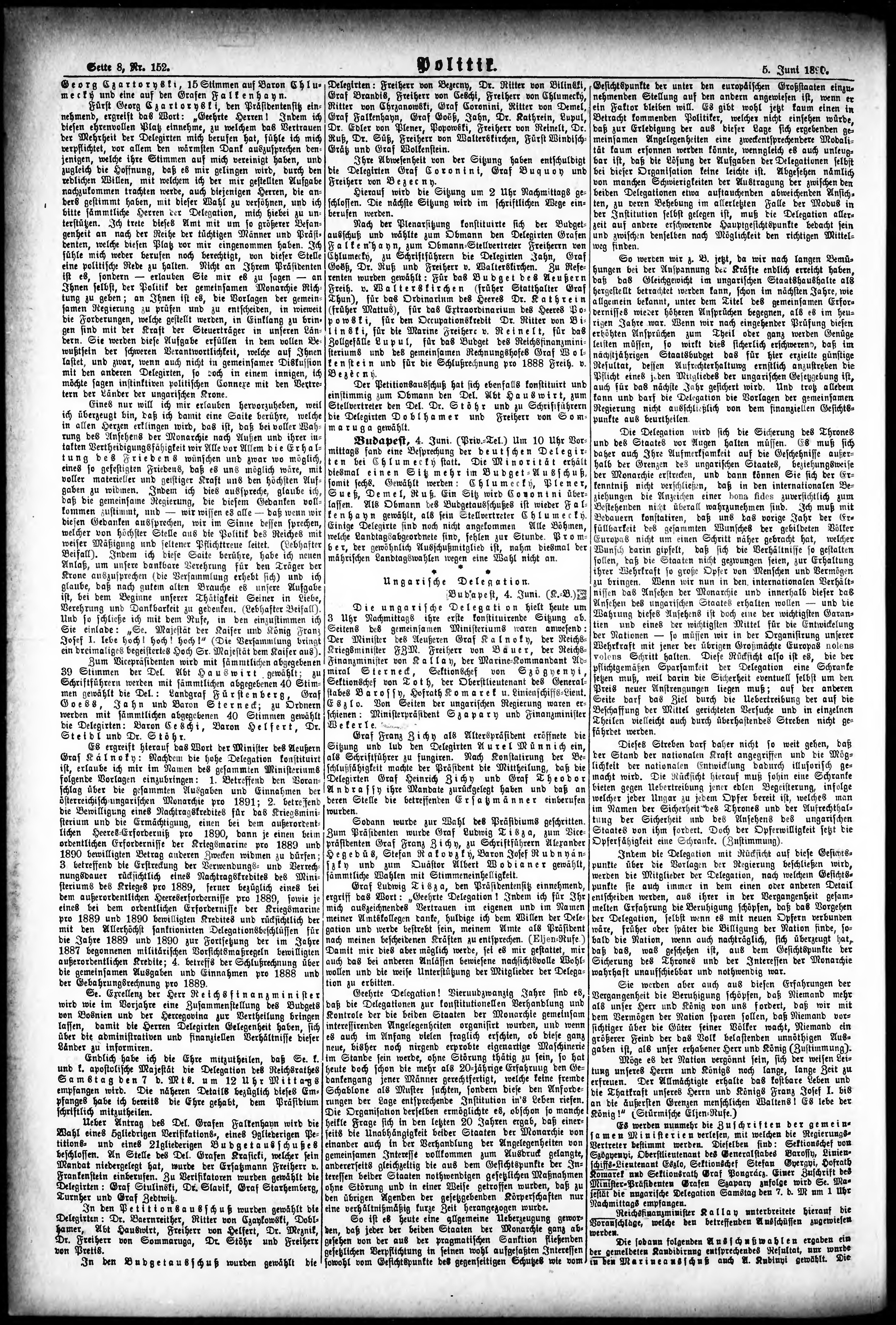 * Datum vydání výtisku: 5.6.1890 Číslo výtisku: 152