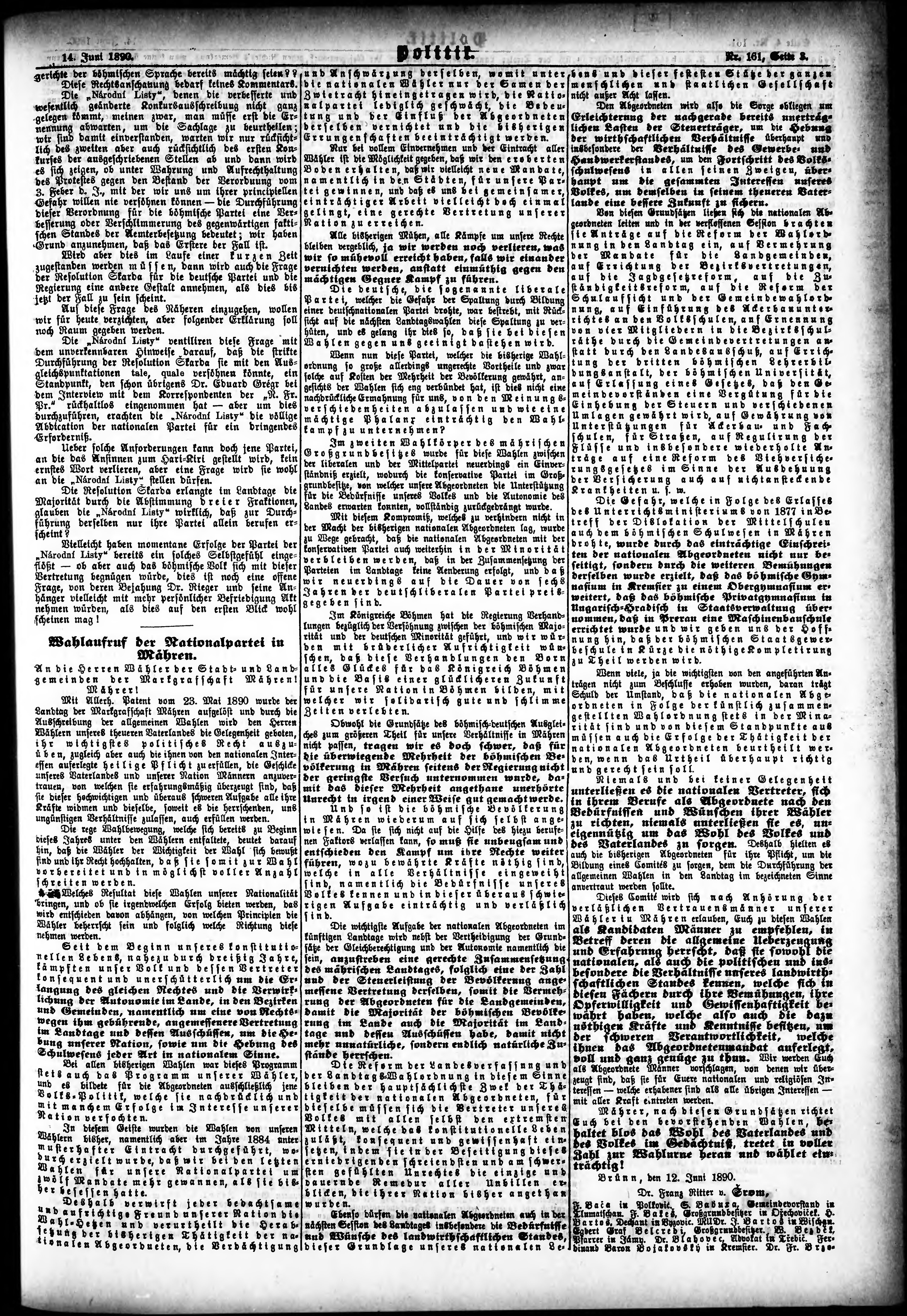 * Datum vydání výtisku: 14.6.1890 Číslo výtisku: 161