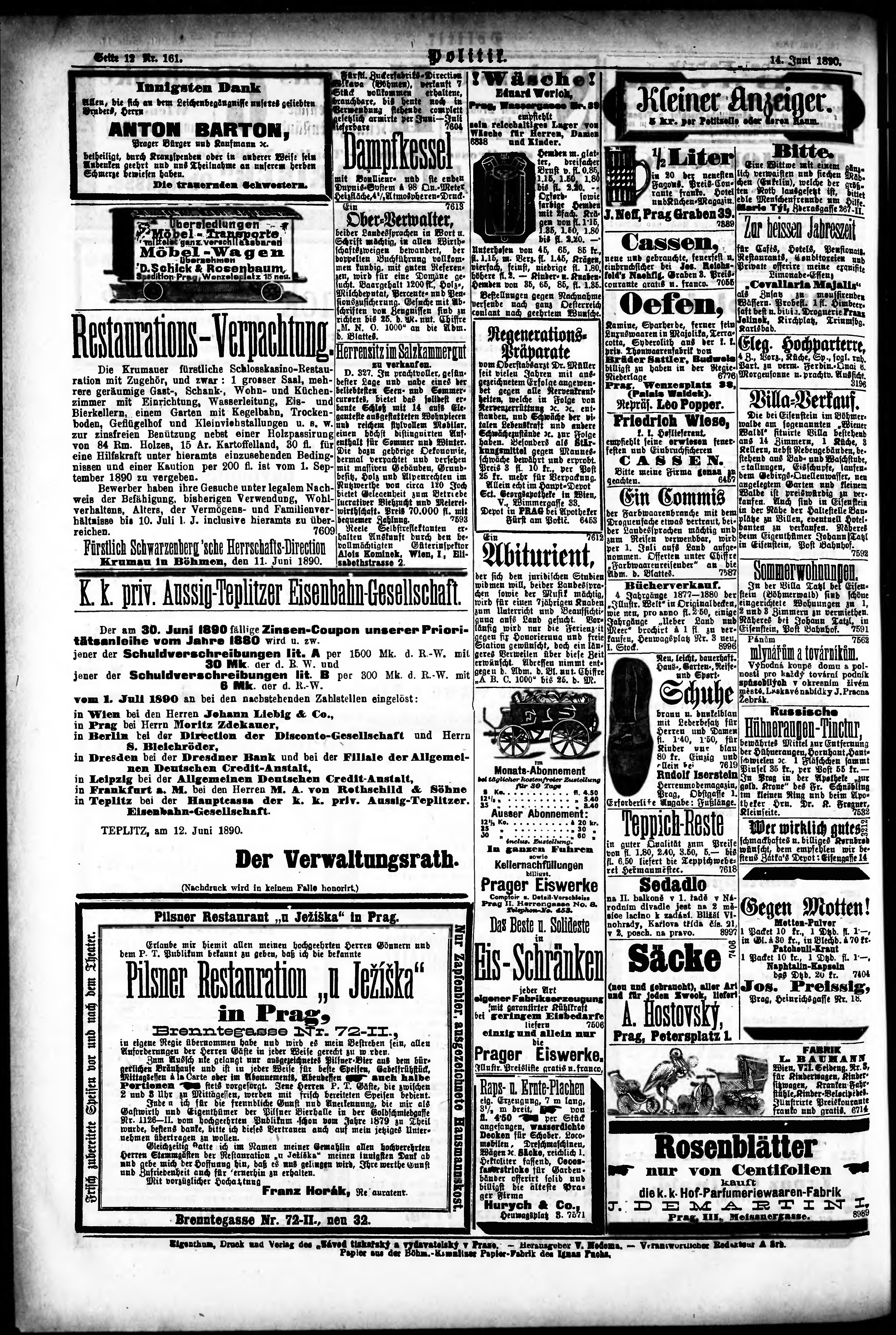 * Datum vydání výtisku: 14.6.1890 Číslo výtisku: 161