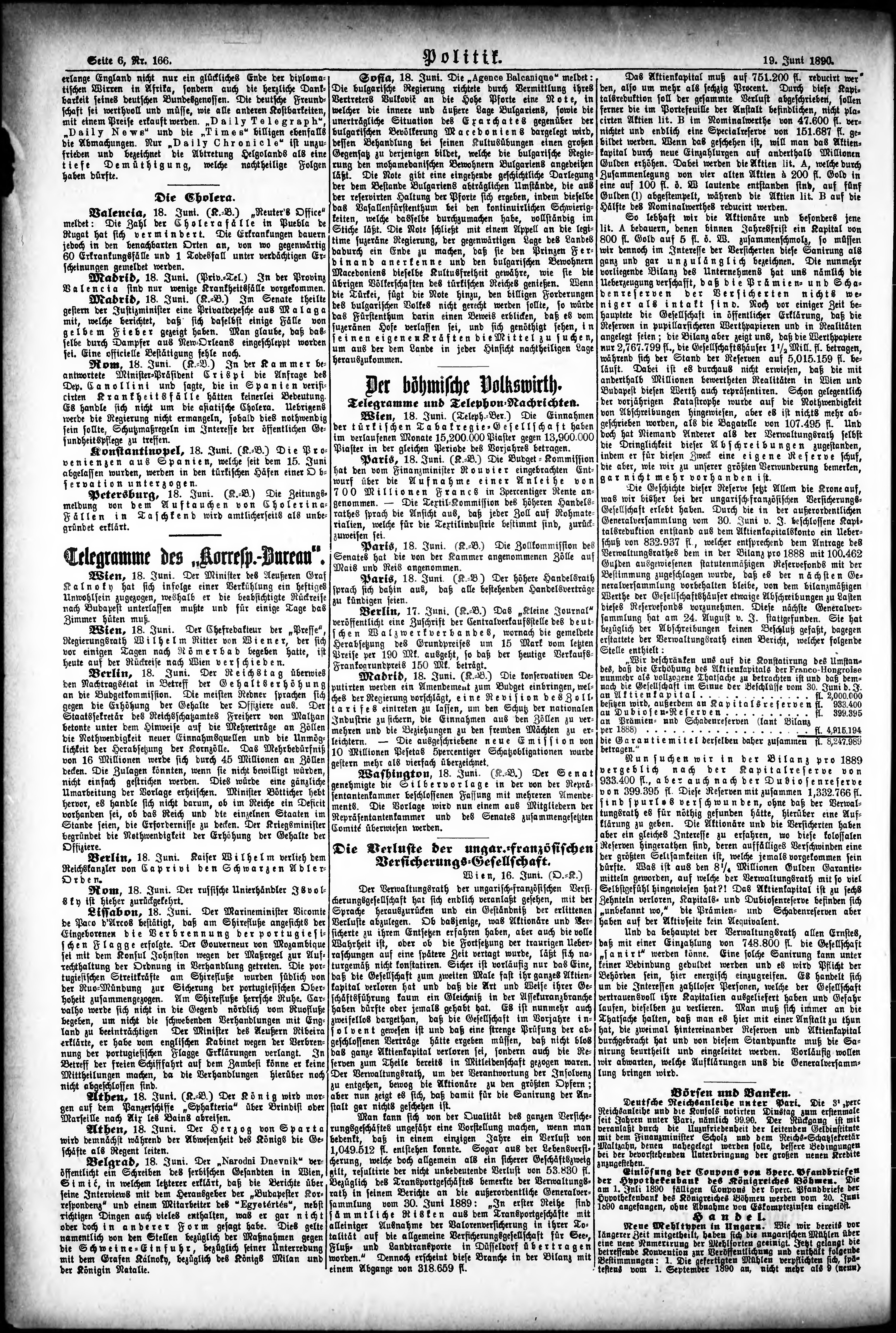 * Datum vydání výtisku: 19.6.1890 Číslo výtisku: 166