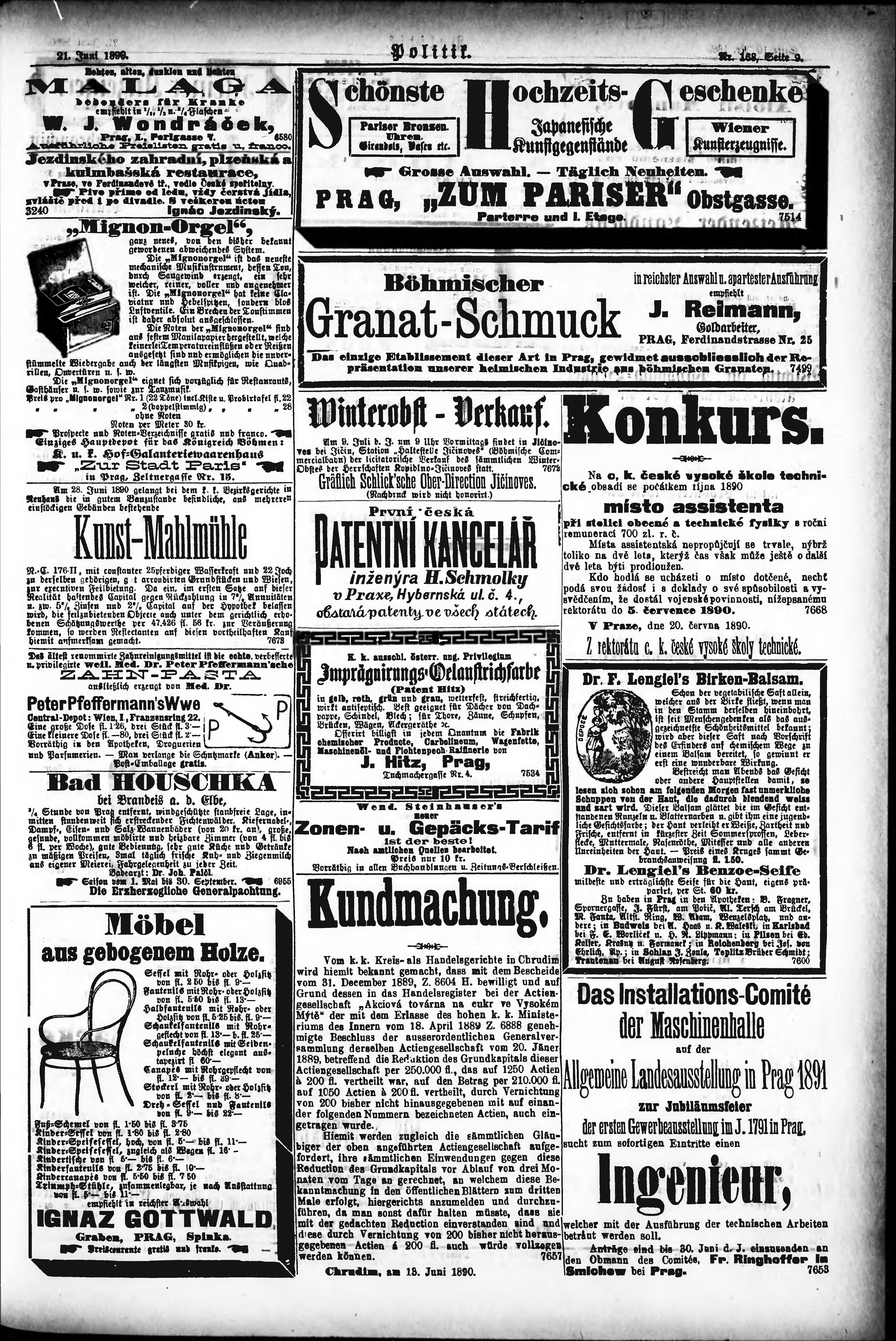 * Datum vydání výtisku: 21.6.1890 Číslo výtisku: 168 Poznámky k výtisku: s. 5 - 6 není k dispozici;