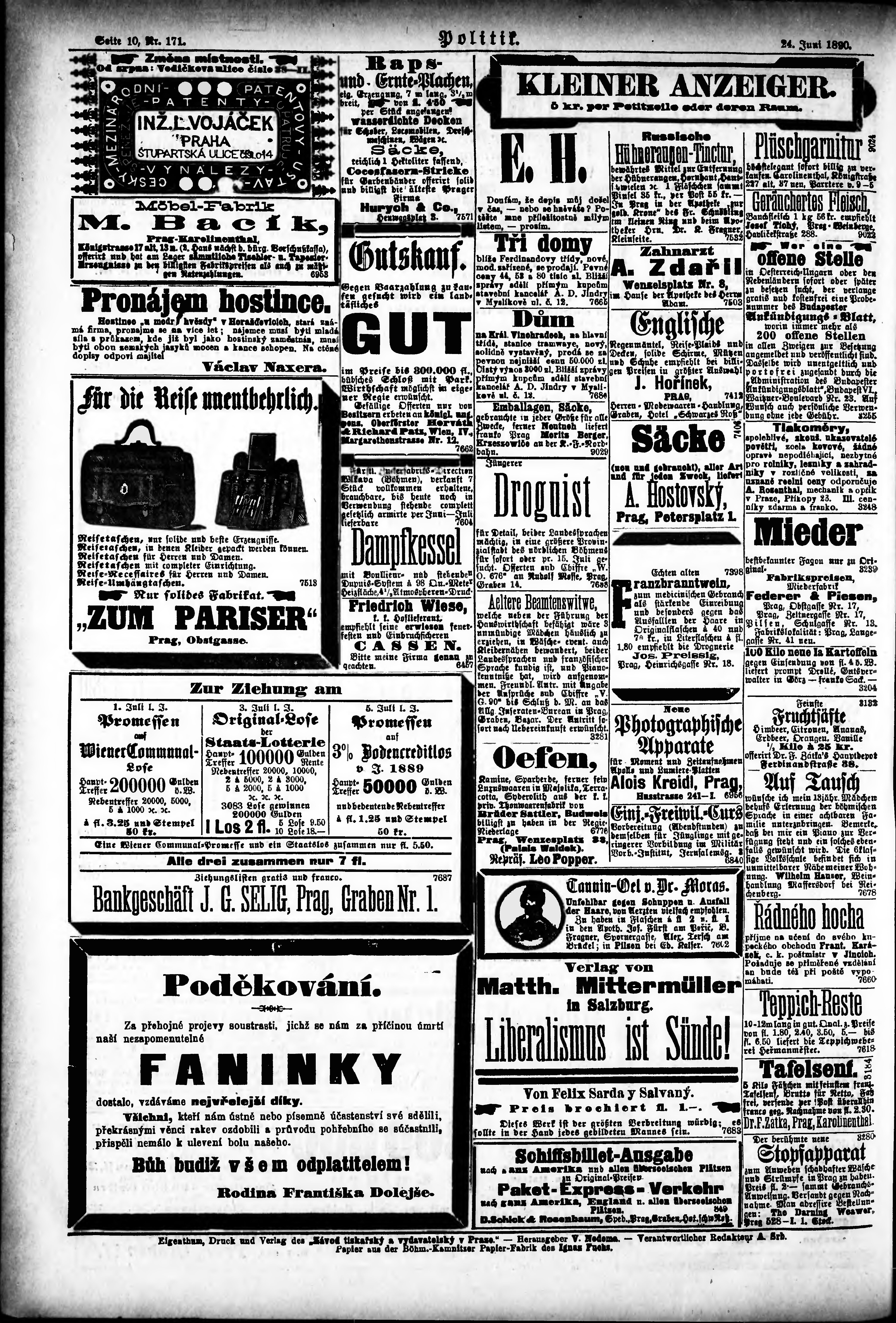 * Datum vydání výtisku: 24.6.1890 Číslo výtisku: 171