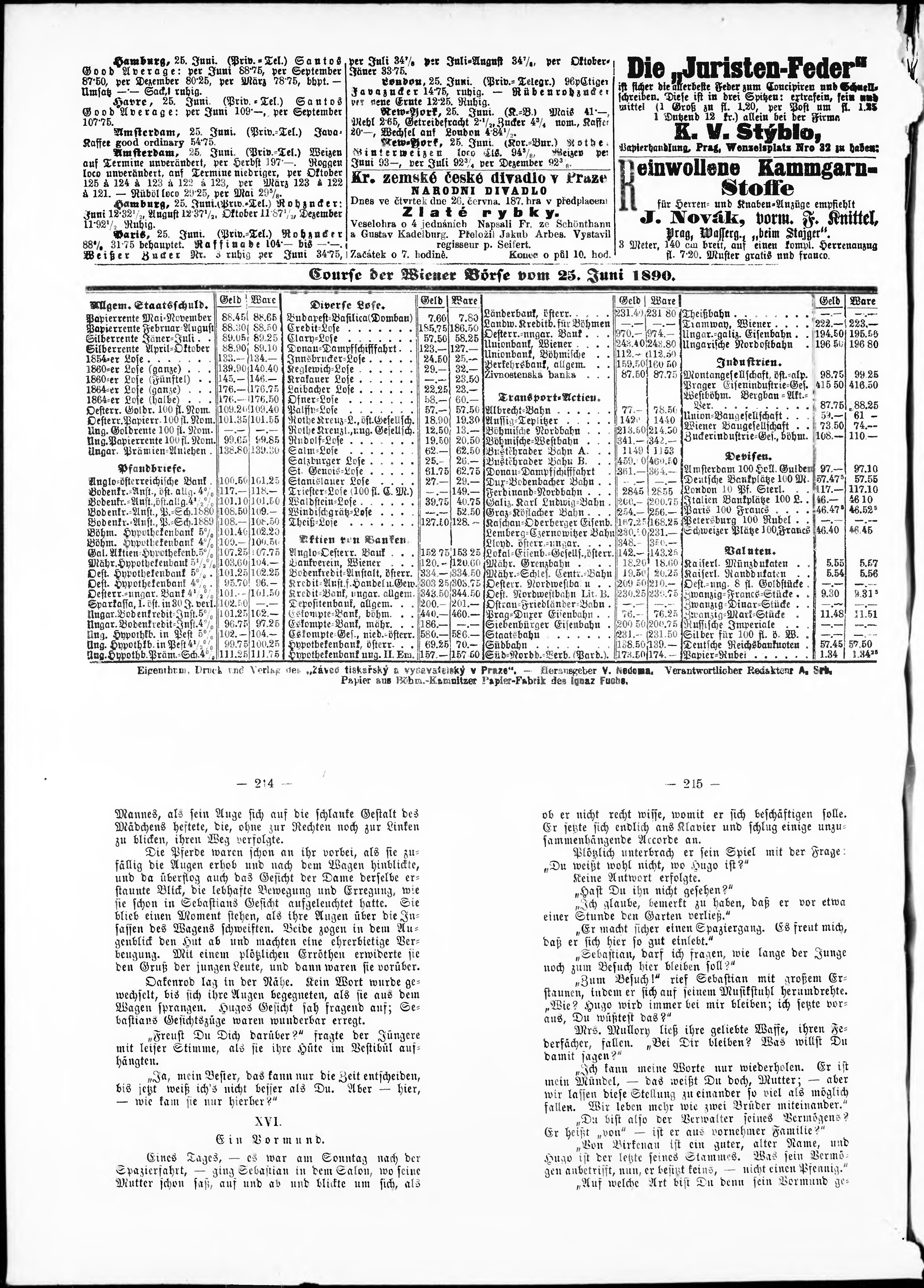 * Datum vydání výtisku: 26.6.1890 Číslo výtisku: 173 Poznámky k výtisku: večerní vydání;
