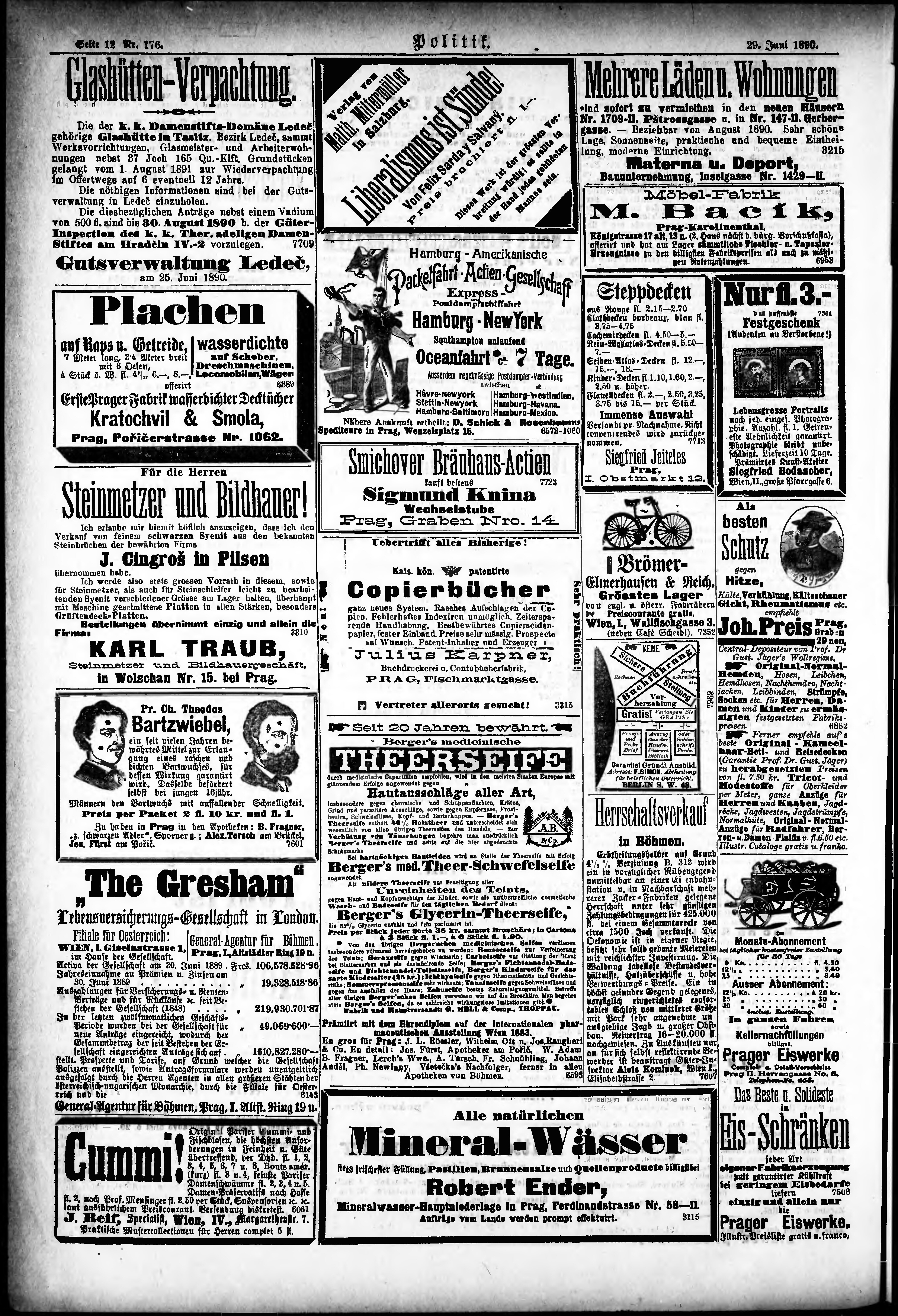 * Datum vydání výtisku: 29.6.1890 Číslo výtisku: 176