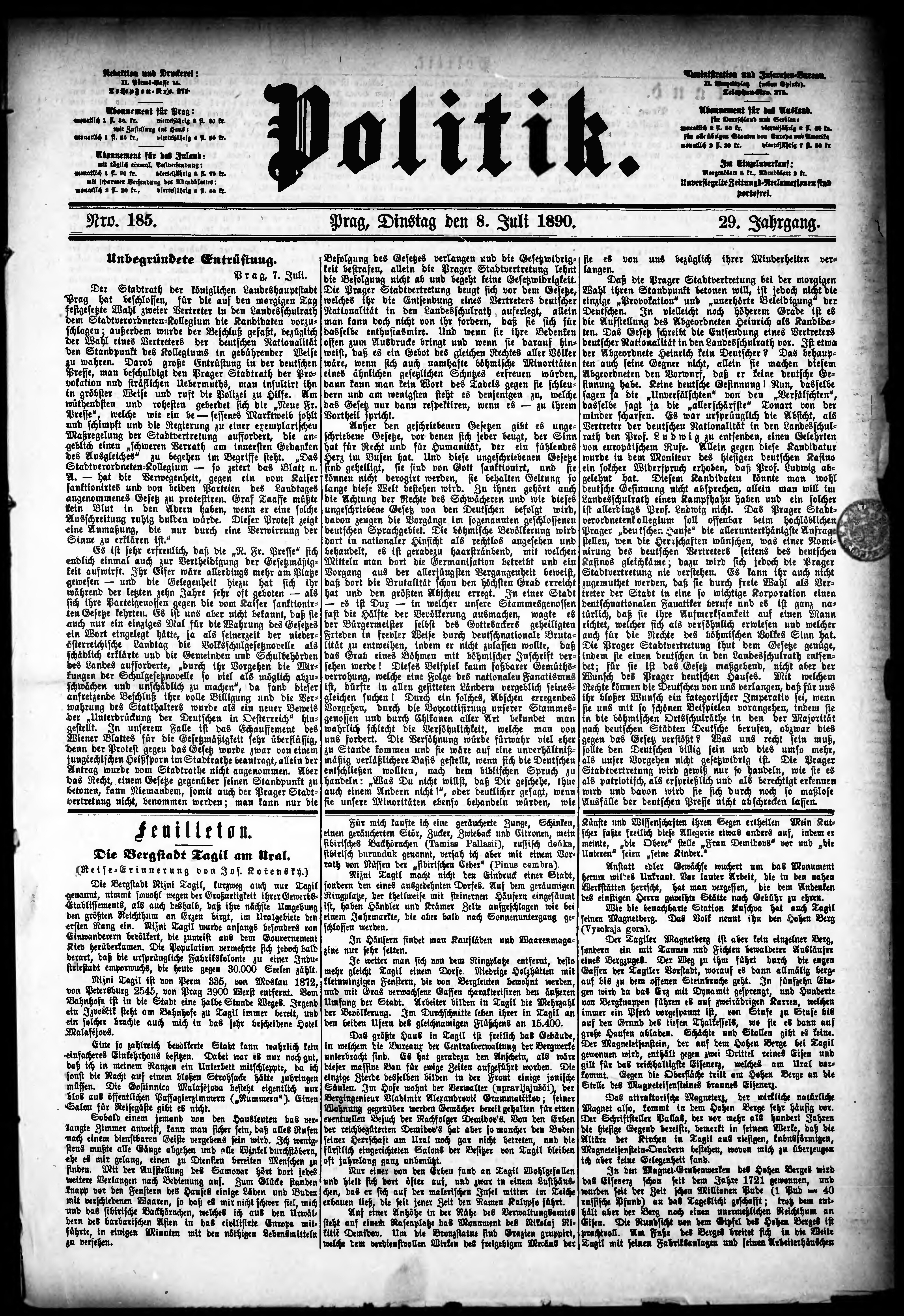 * Datum vydání výtisku: 8.7.1890 Číslo výtisku: 185