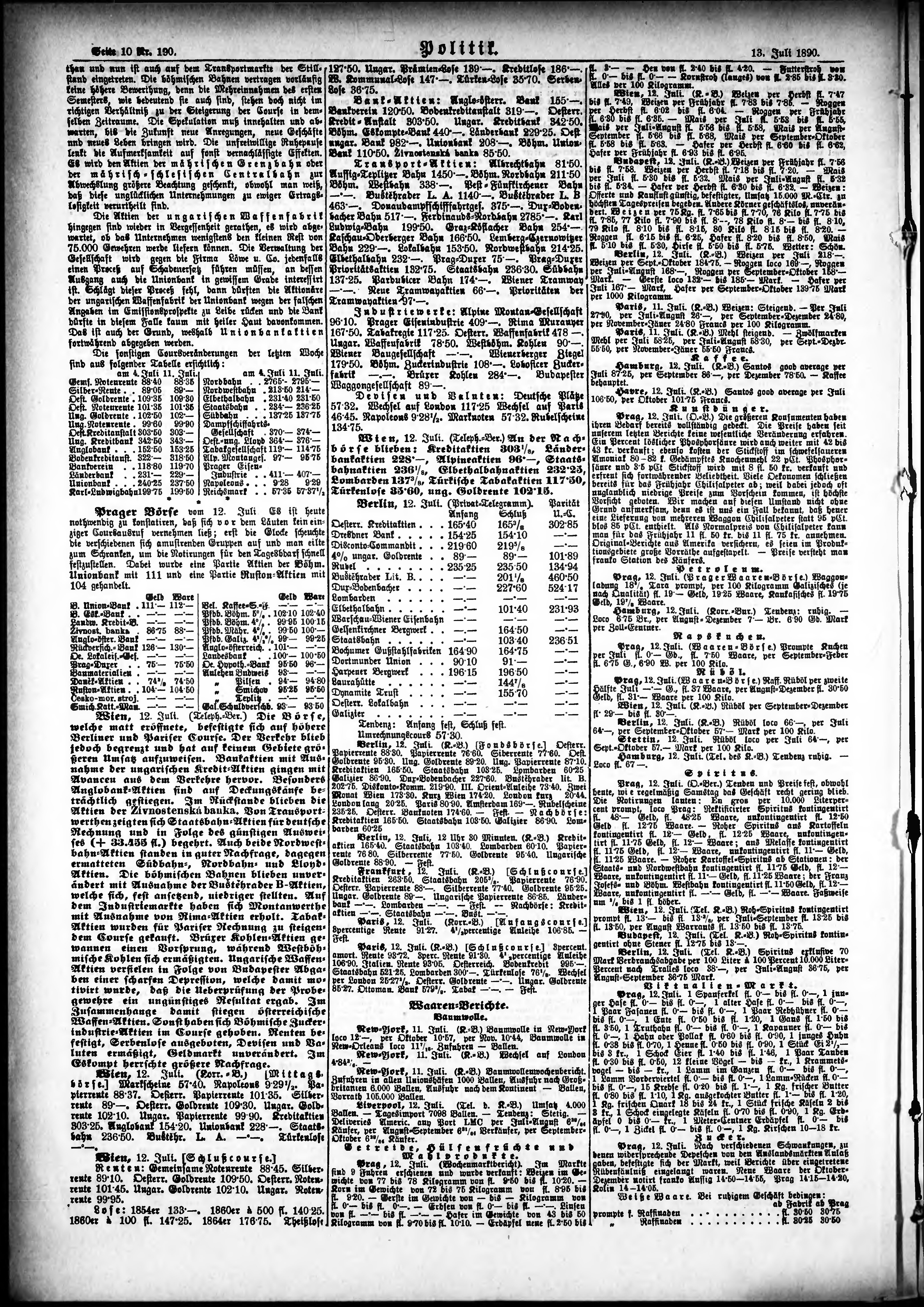 * Datum vydání výtisku: 13.7.1890 Číslo výtisku: 190