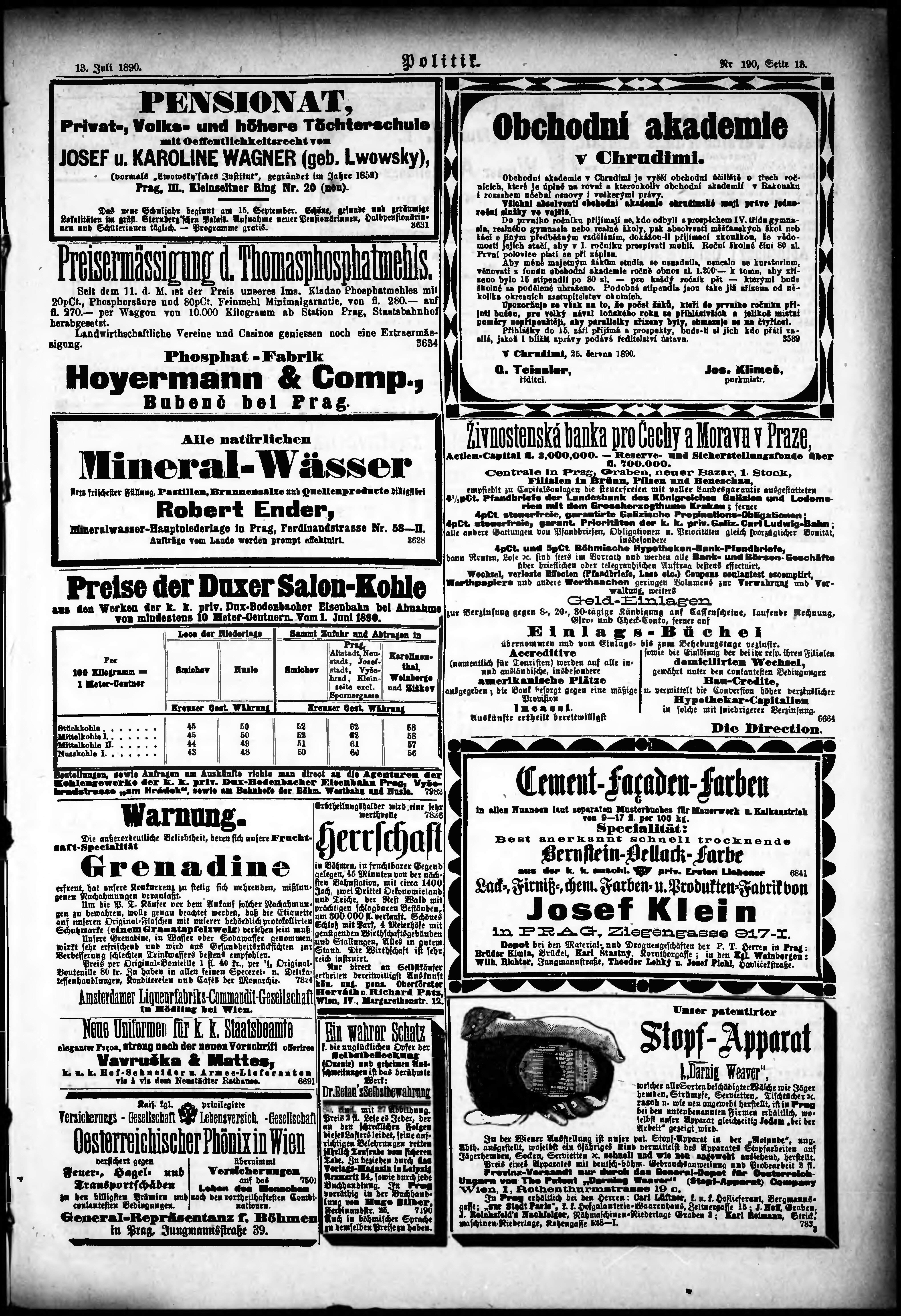 * Datum vydání výtisku: 13.7.1890 Číslo výtisku: 190