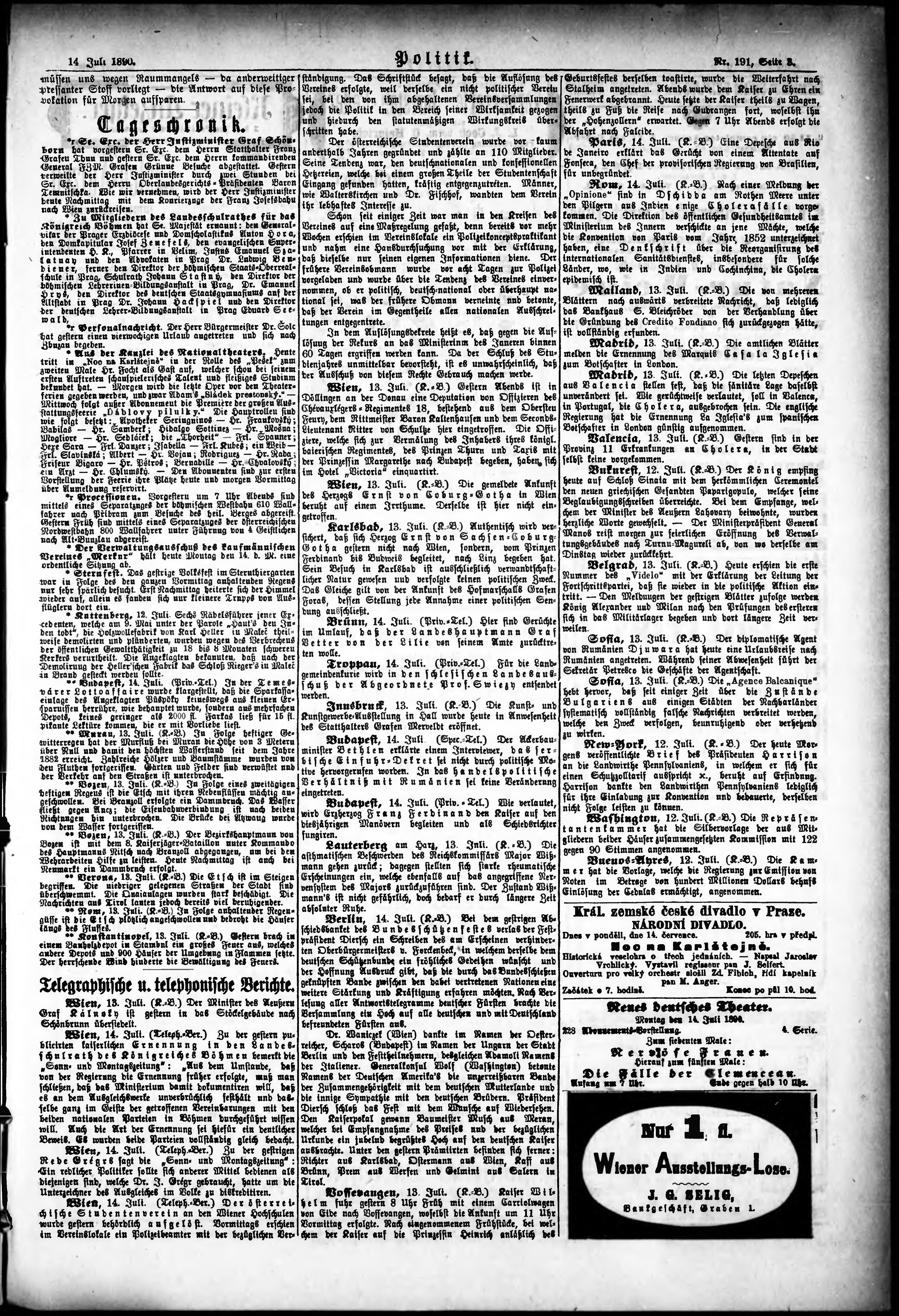 * Datum vydání výtisku: 14.7.1890 Číslo výtisku: 191