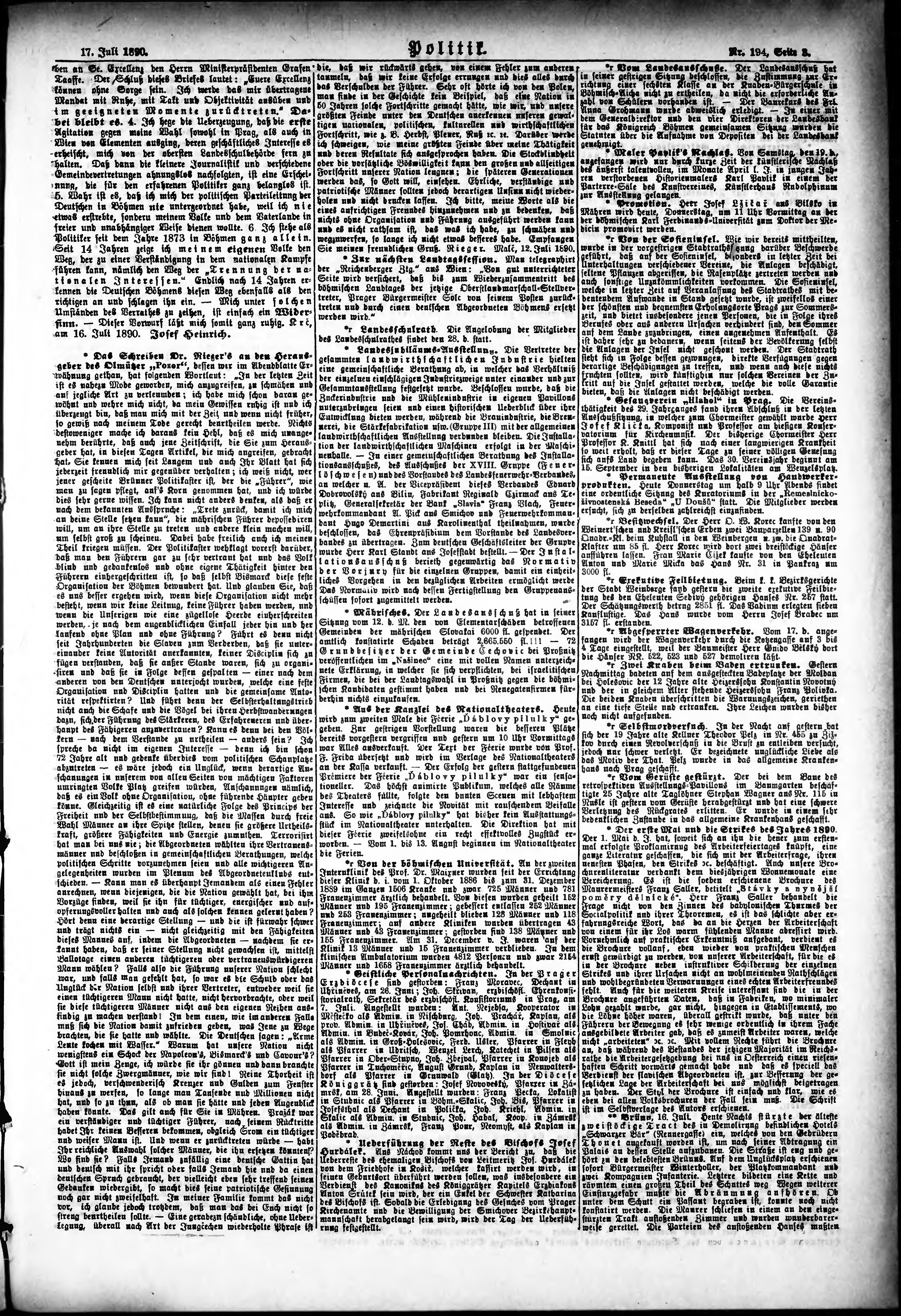 * Datum vydání výtisku: 17.7.1890 Číslo výtisku: 194