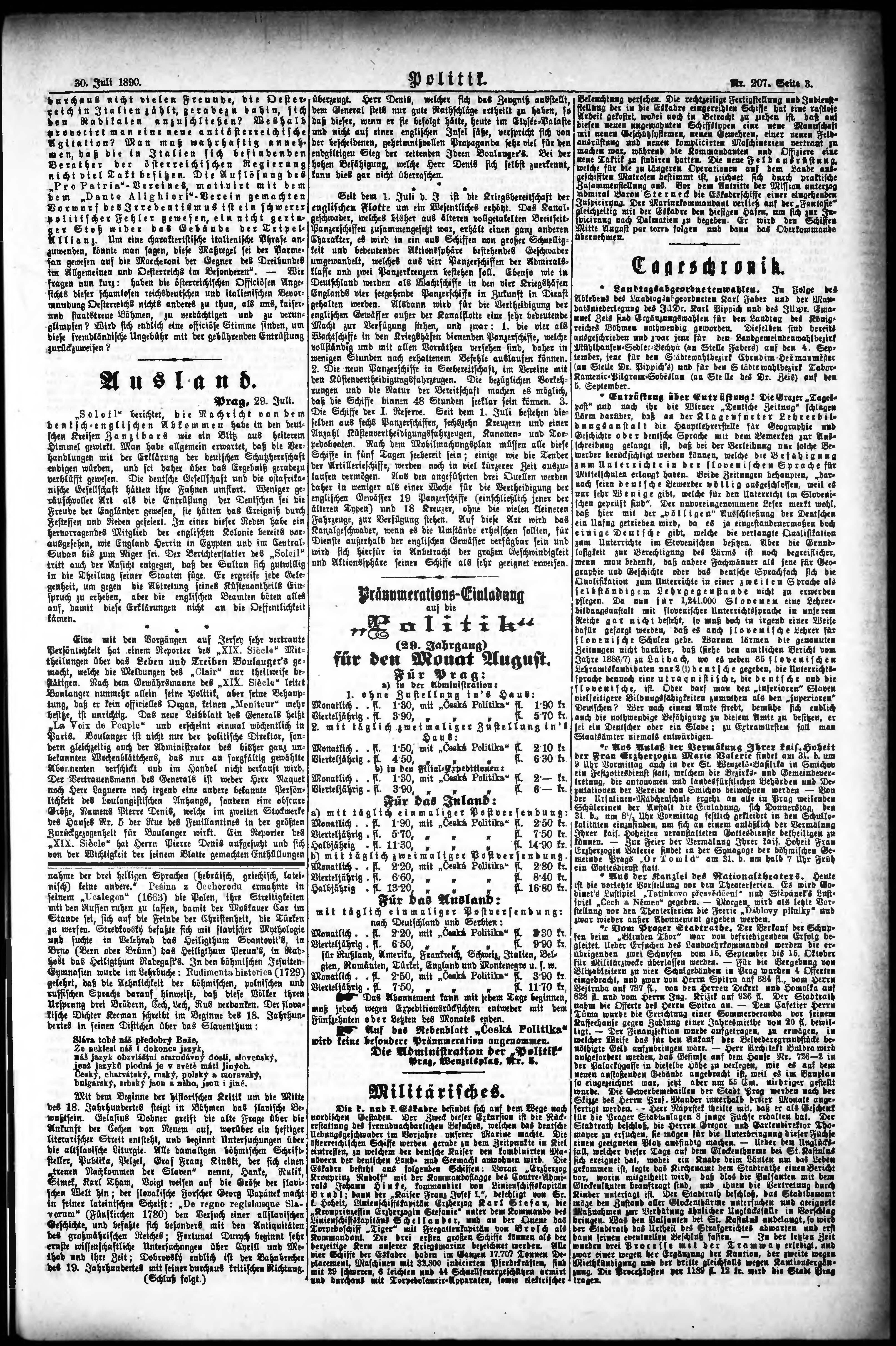 * Datum vydání výtisku: 30.7.1890 Číslo výtisku: 207