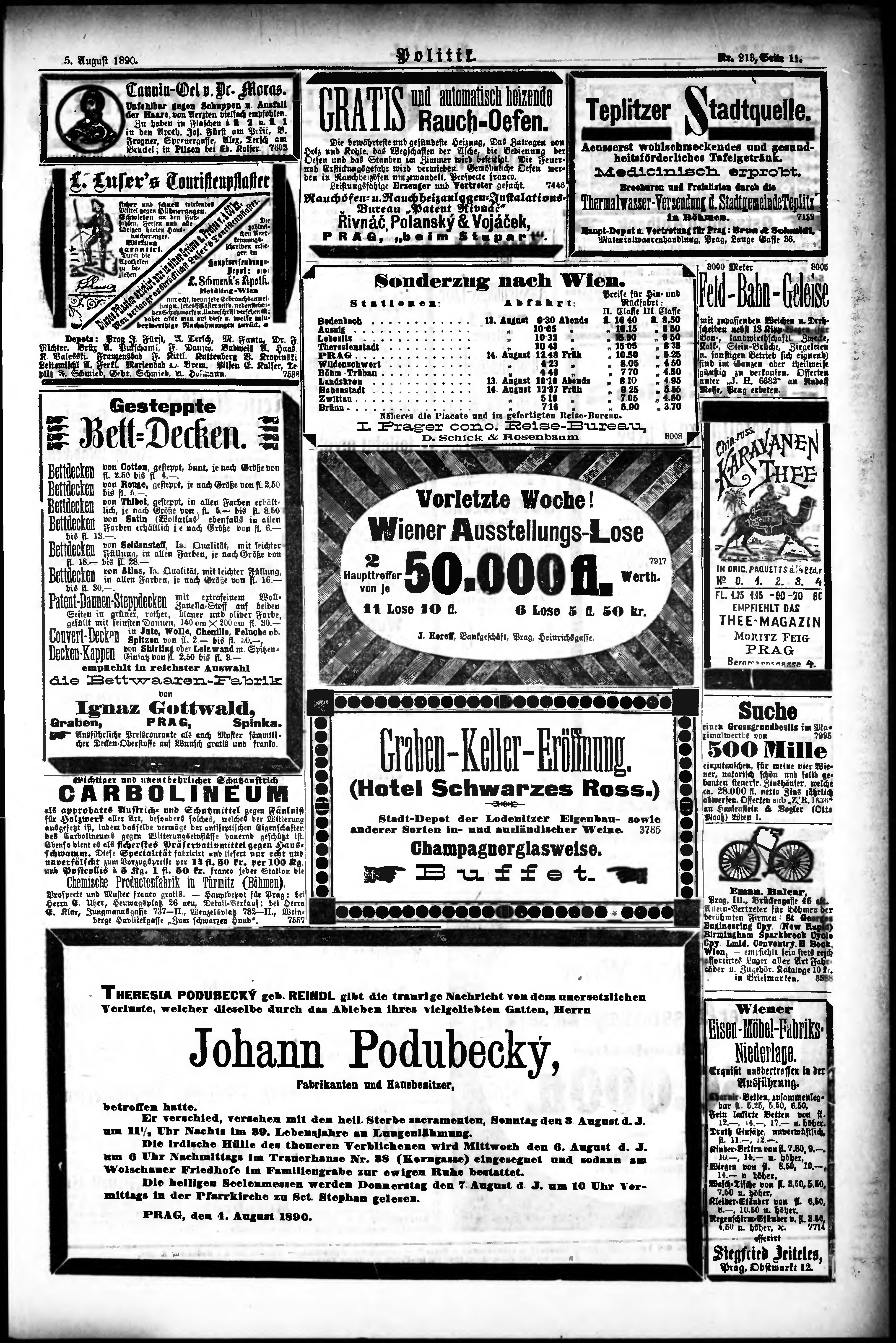 * Datum vydání výtisku: 5.8.1890 Číslo výtisku: 213