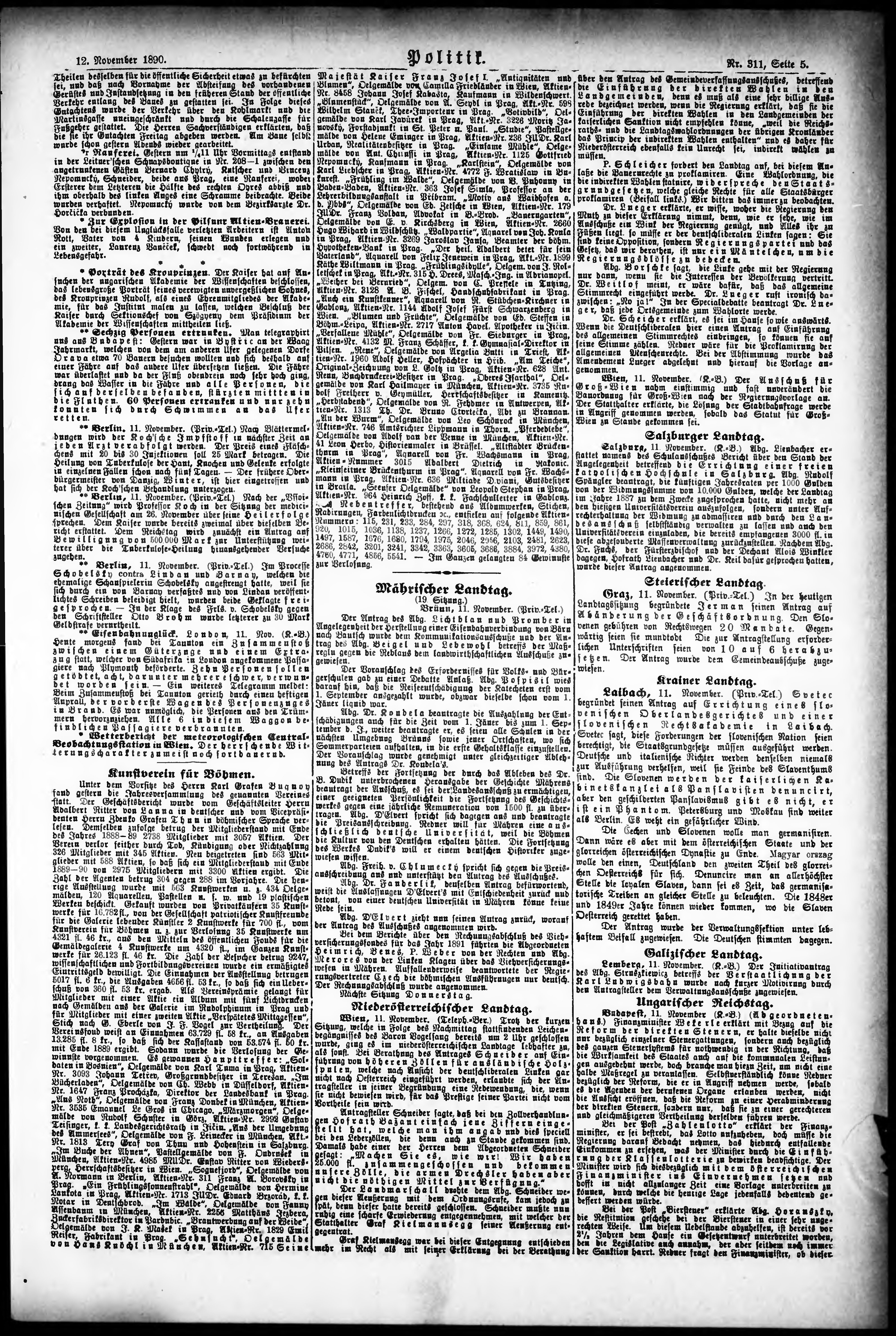 * Datum vydání výtisku: 12.11.1890 Číslo výtisku: 311