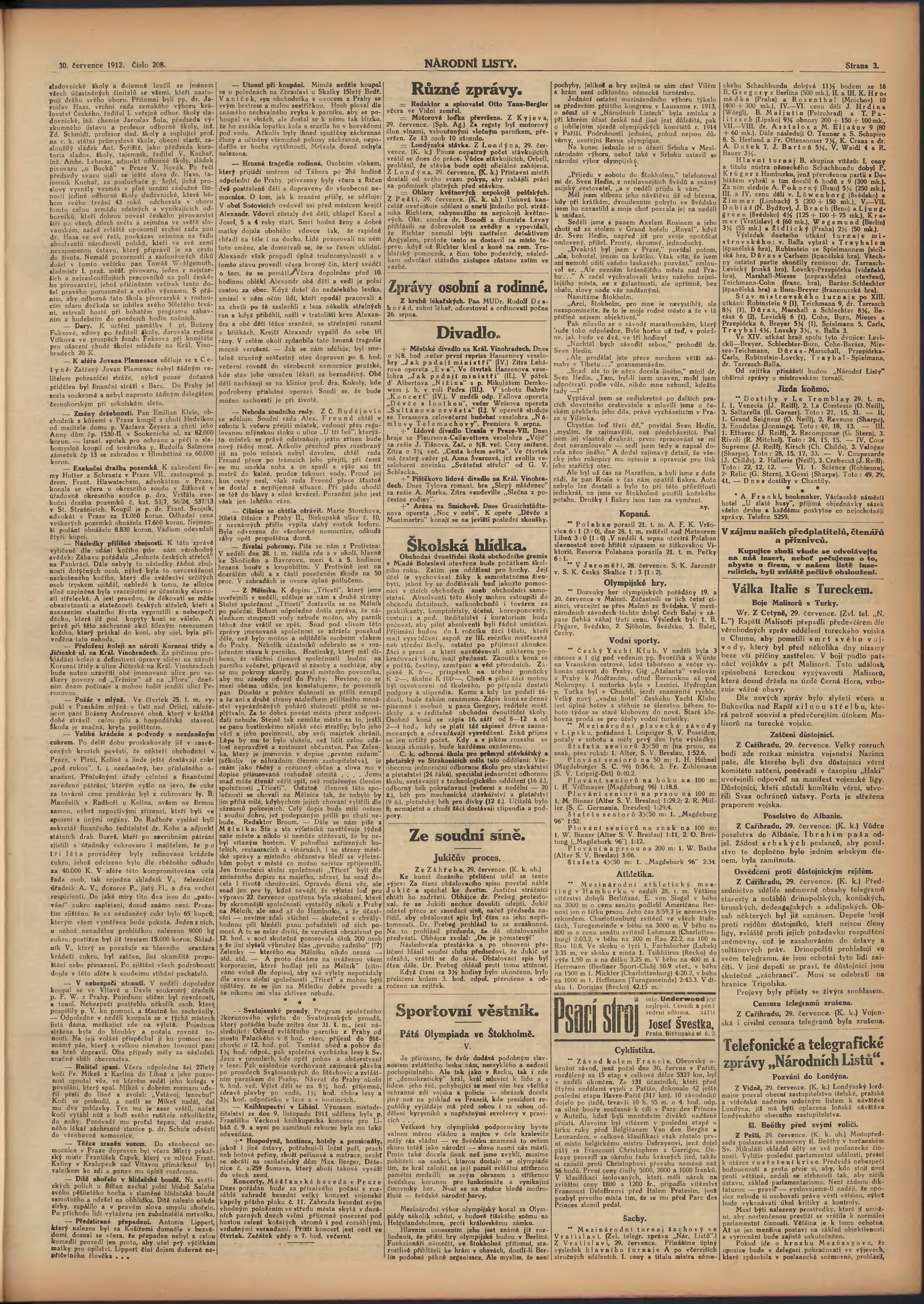 * Datum vydání výtisku: 30.7.1912 Číslo výtisku: 208 Poznámky k výtisku: ranní vydání;