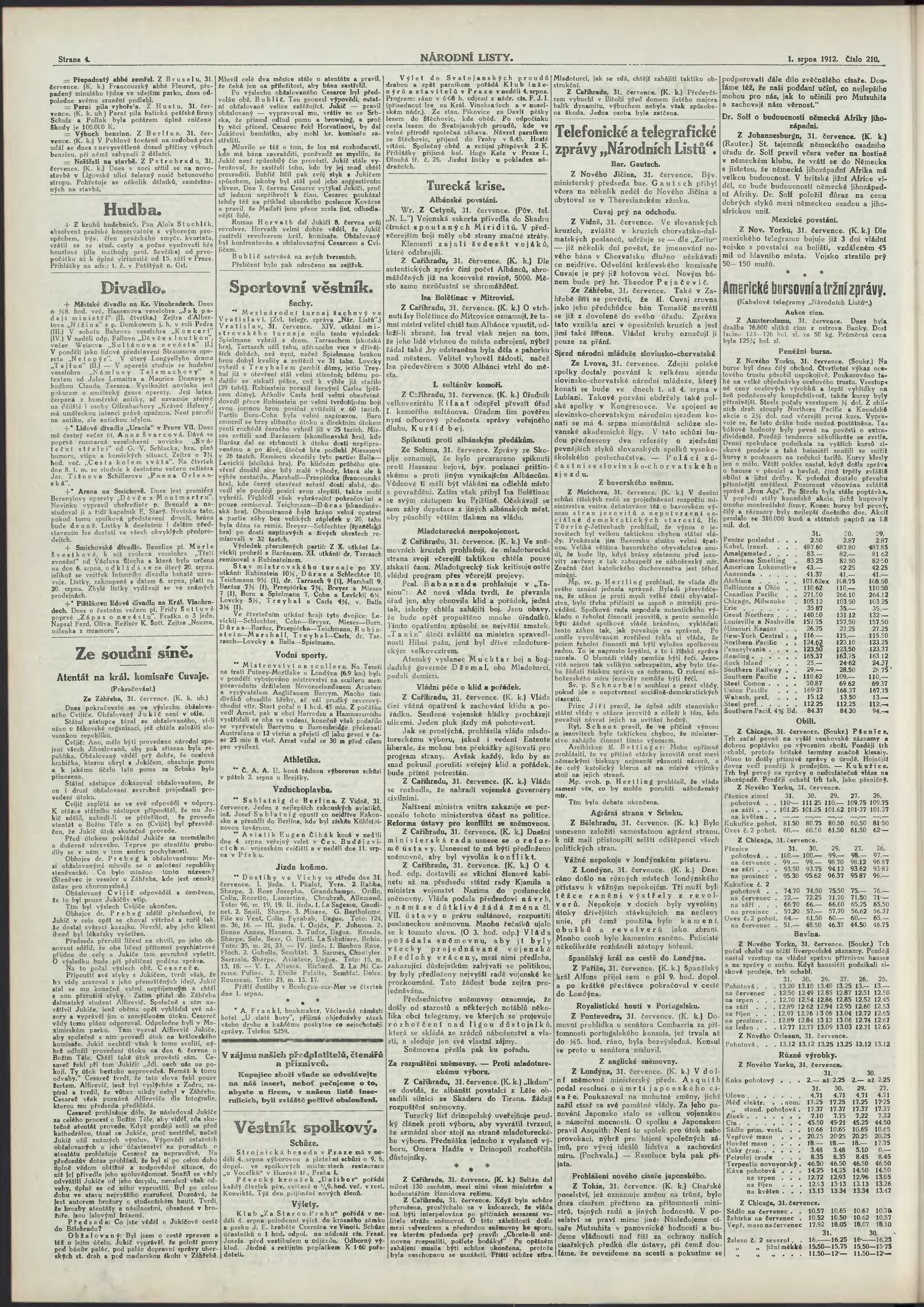 * Datum vydání výtisku: 1.8.1912 Číslo výtisku: 210 Poznámky k výtisku: ranní vydání;
