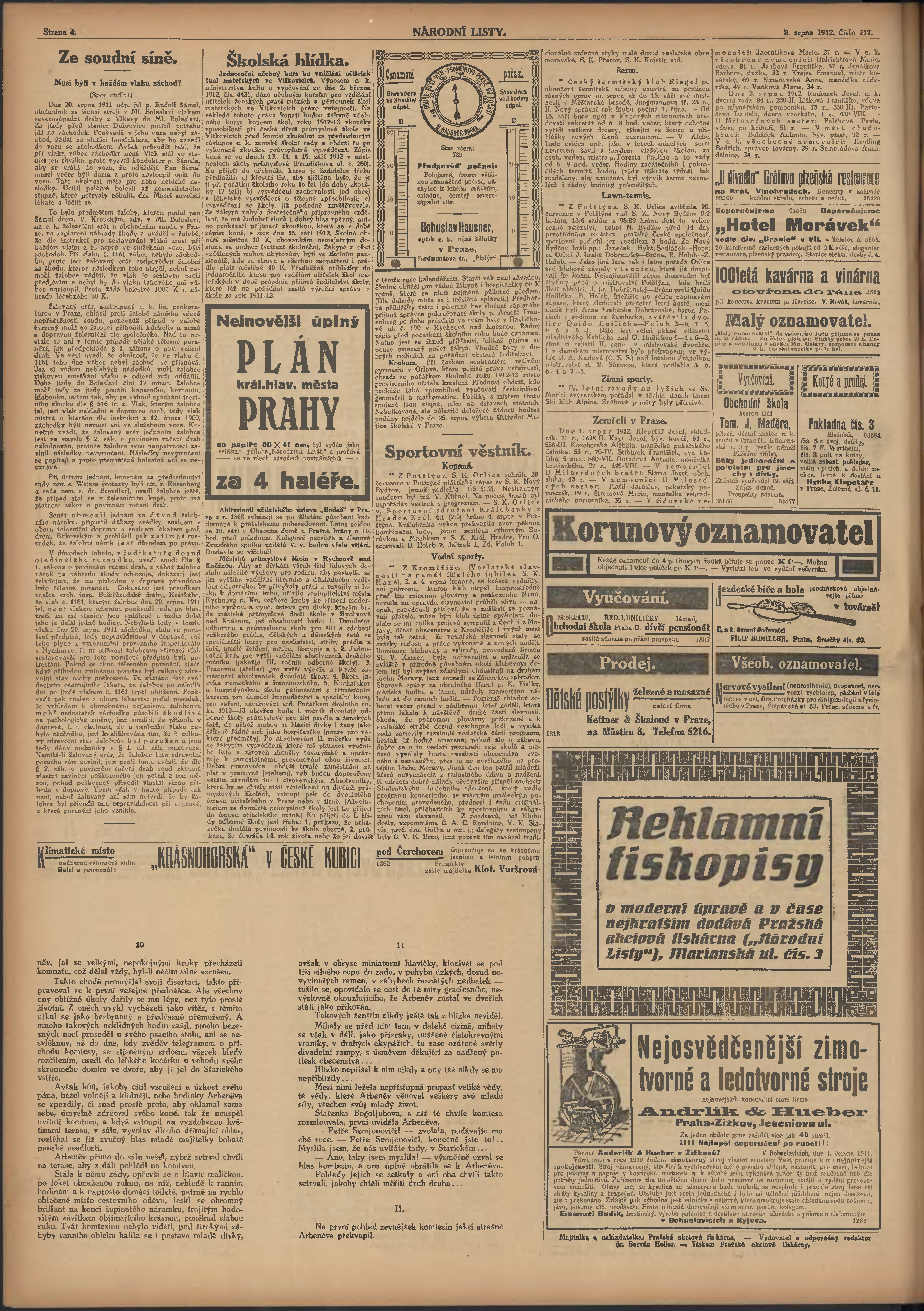 * Datum vydání výtisku: 8.8.1912 Číslo výtisku: 217 Poznámky k výtisku: večerní vydání;