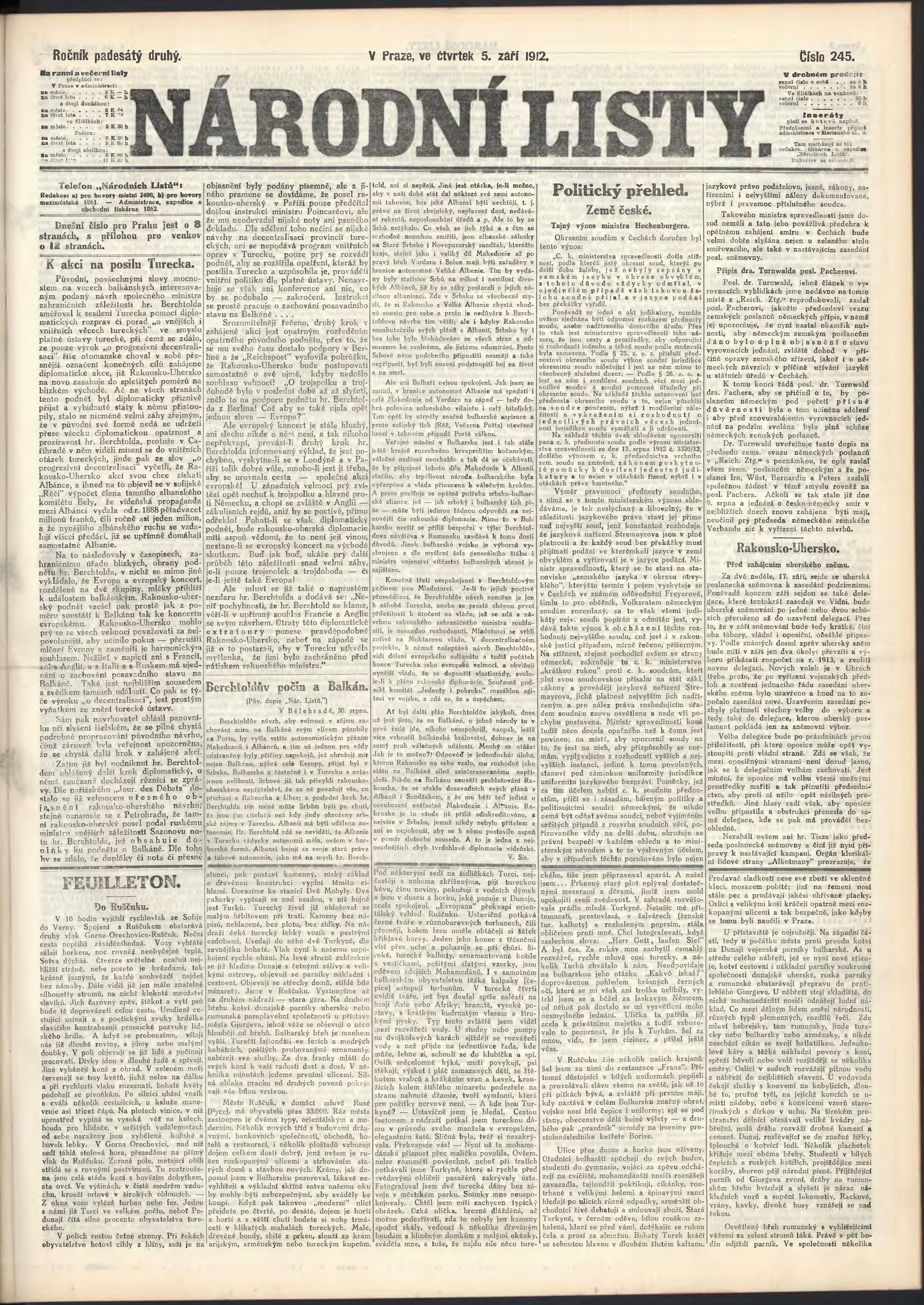 * Datum vydání výtisku: 5.9.1912 Číslo výtisku: 245 Poznámky k výtisku: ranní vydání;