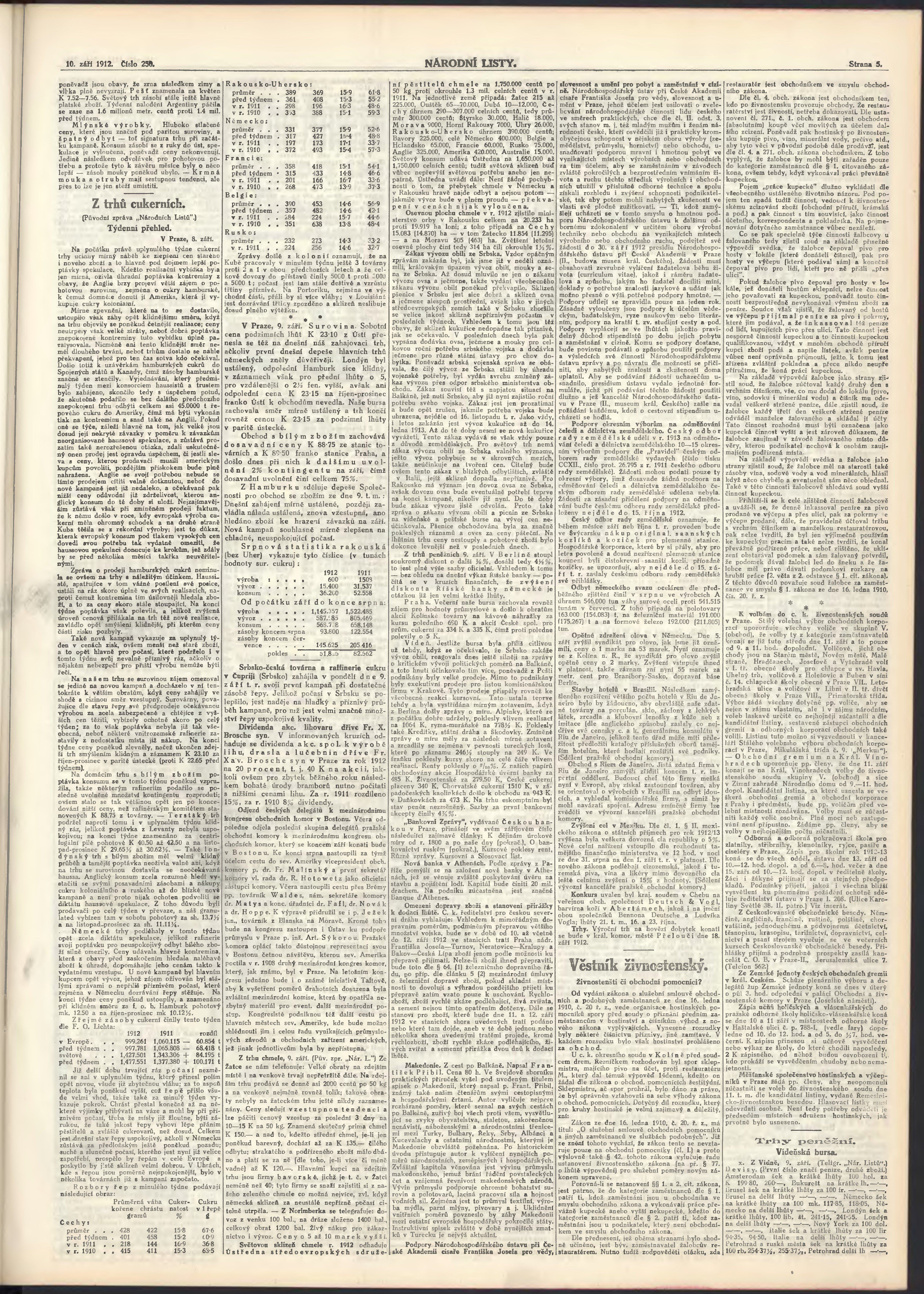 * Datum vydání výtisku: 10.9.1912 Číslo výtisku: 250 Poznámky k výtisku: ranní vydání;