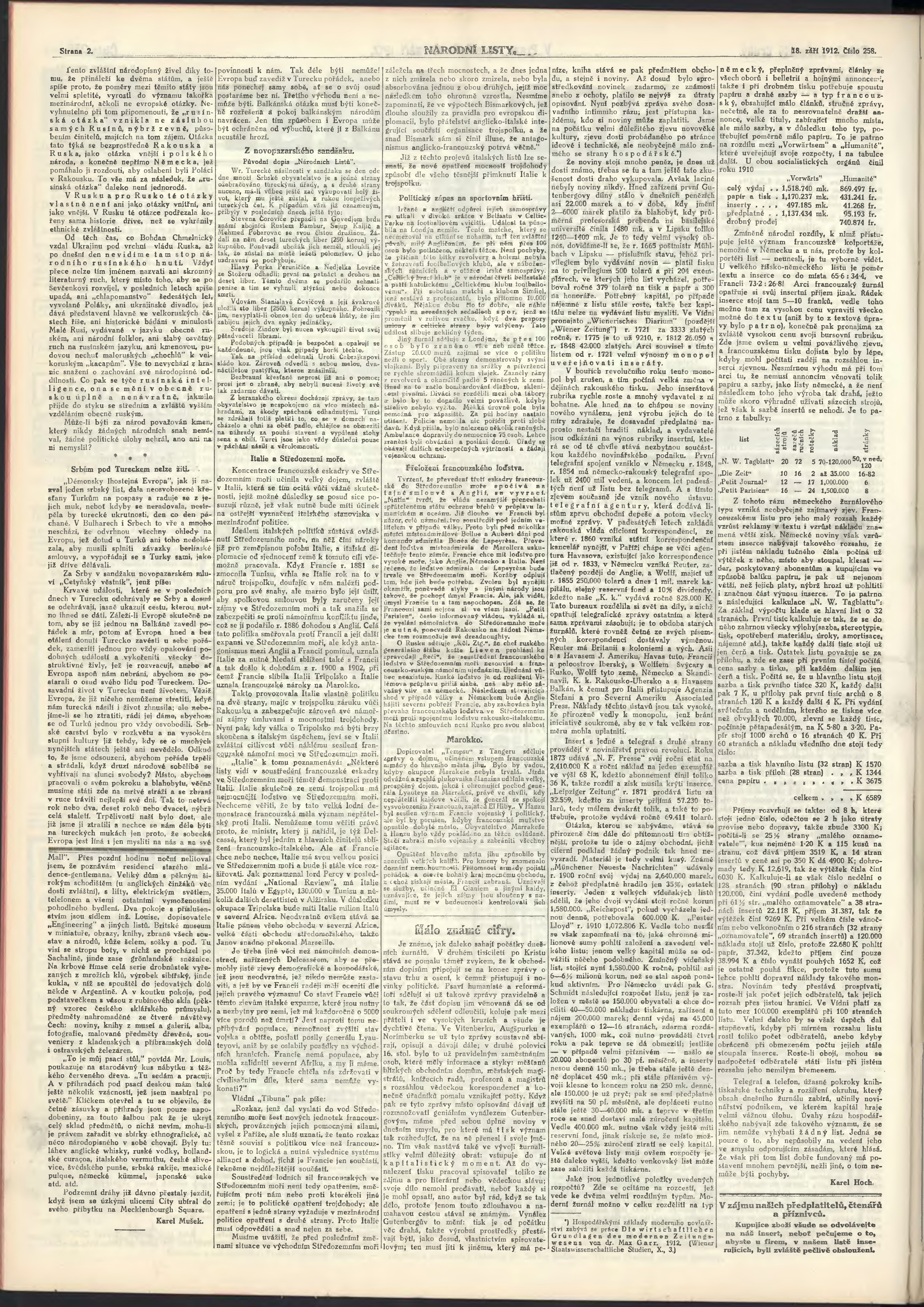 * Datum vydání výtisku: 18.9.1912 Číslo výtisku: 258 Poznámky k výtisku: ranní vydání;