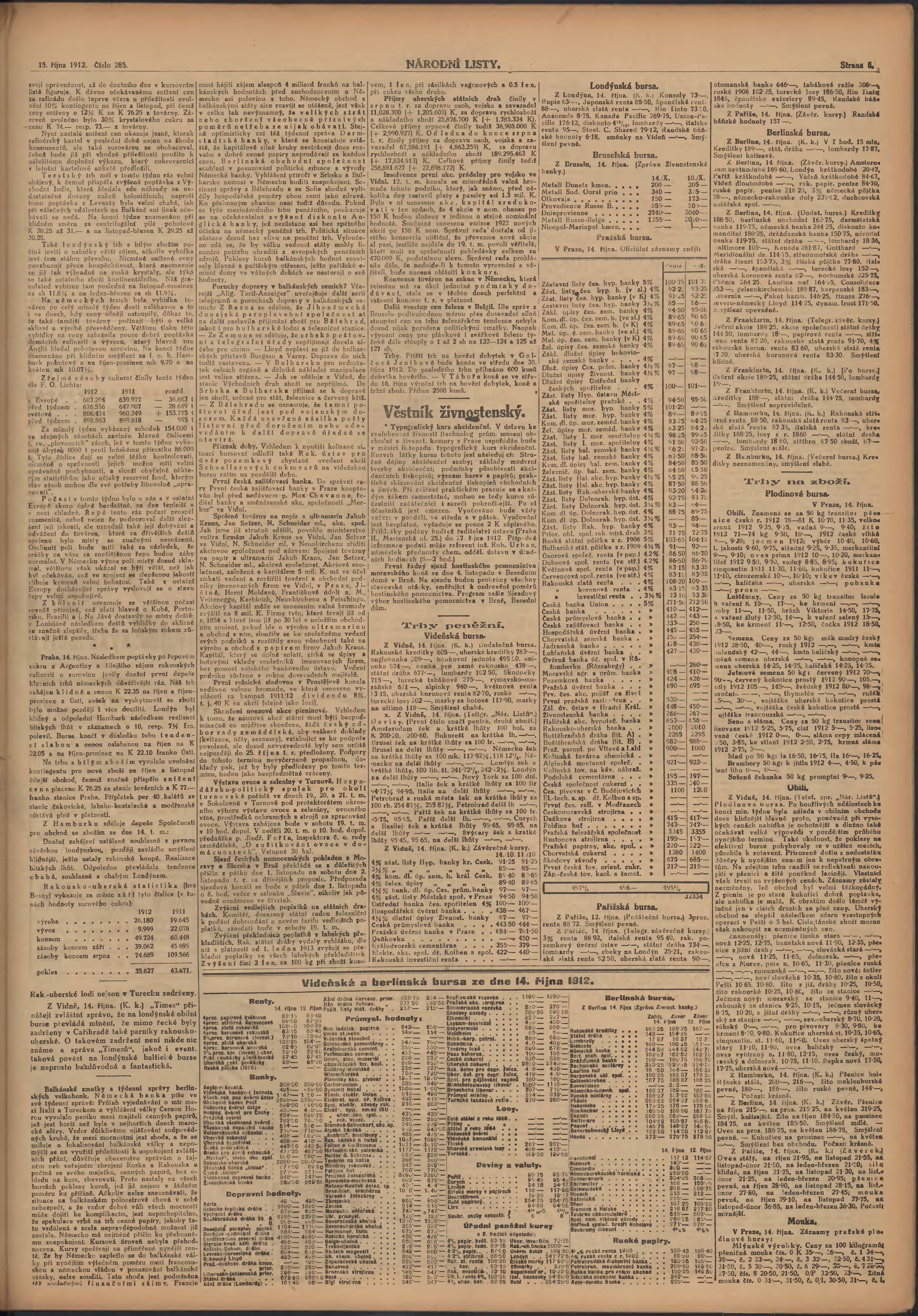* Datum vydání výtisku: 15.10.1912 Číslo výtisku: 285 Poznámky k výtisku: ranní vydání;
