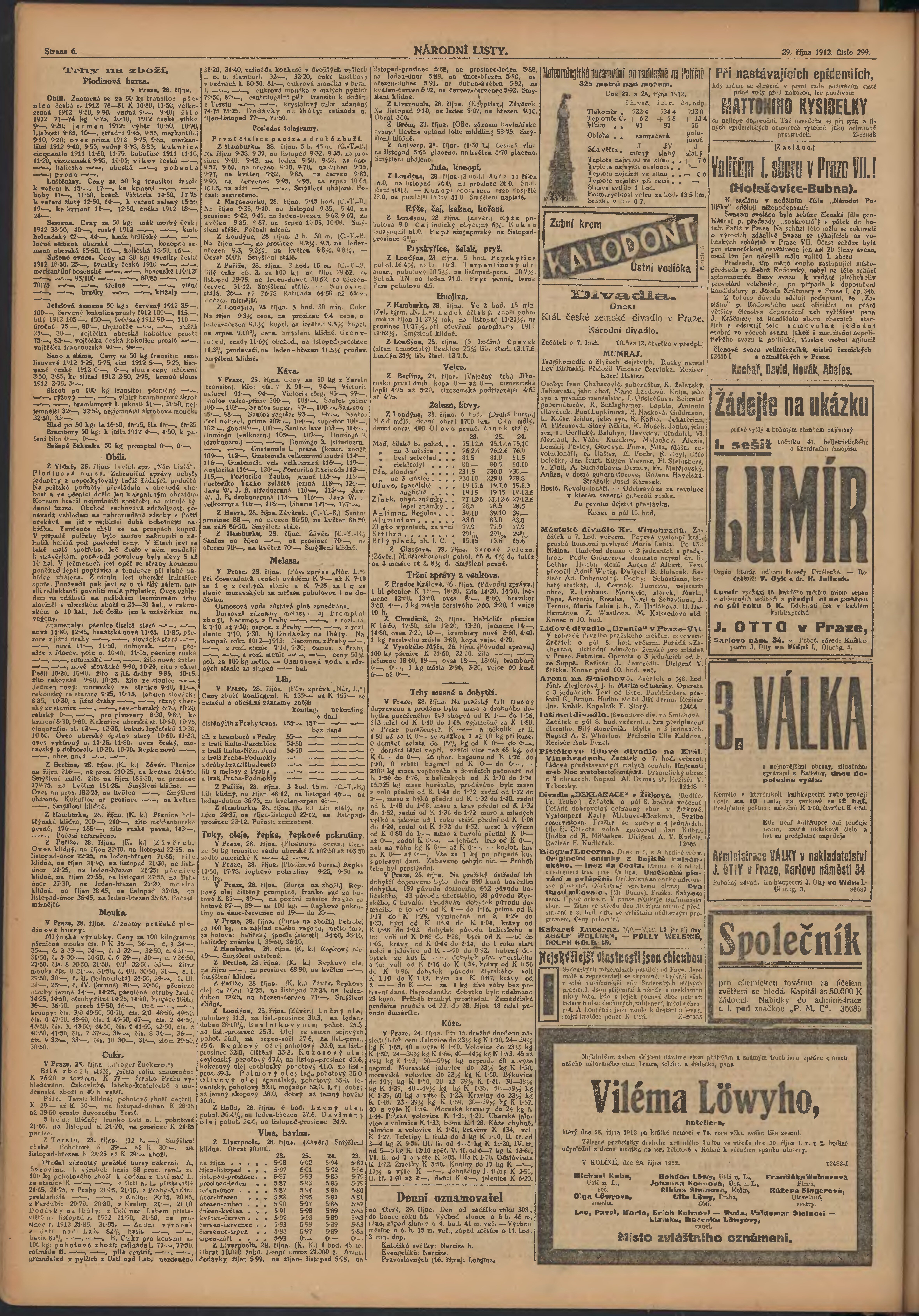 * Datum vydání výtisku: 29.10.1912 Číslo výtisku: 299 Poznámky k výtisku: ranní vydání;