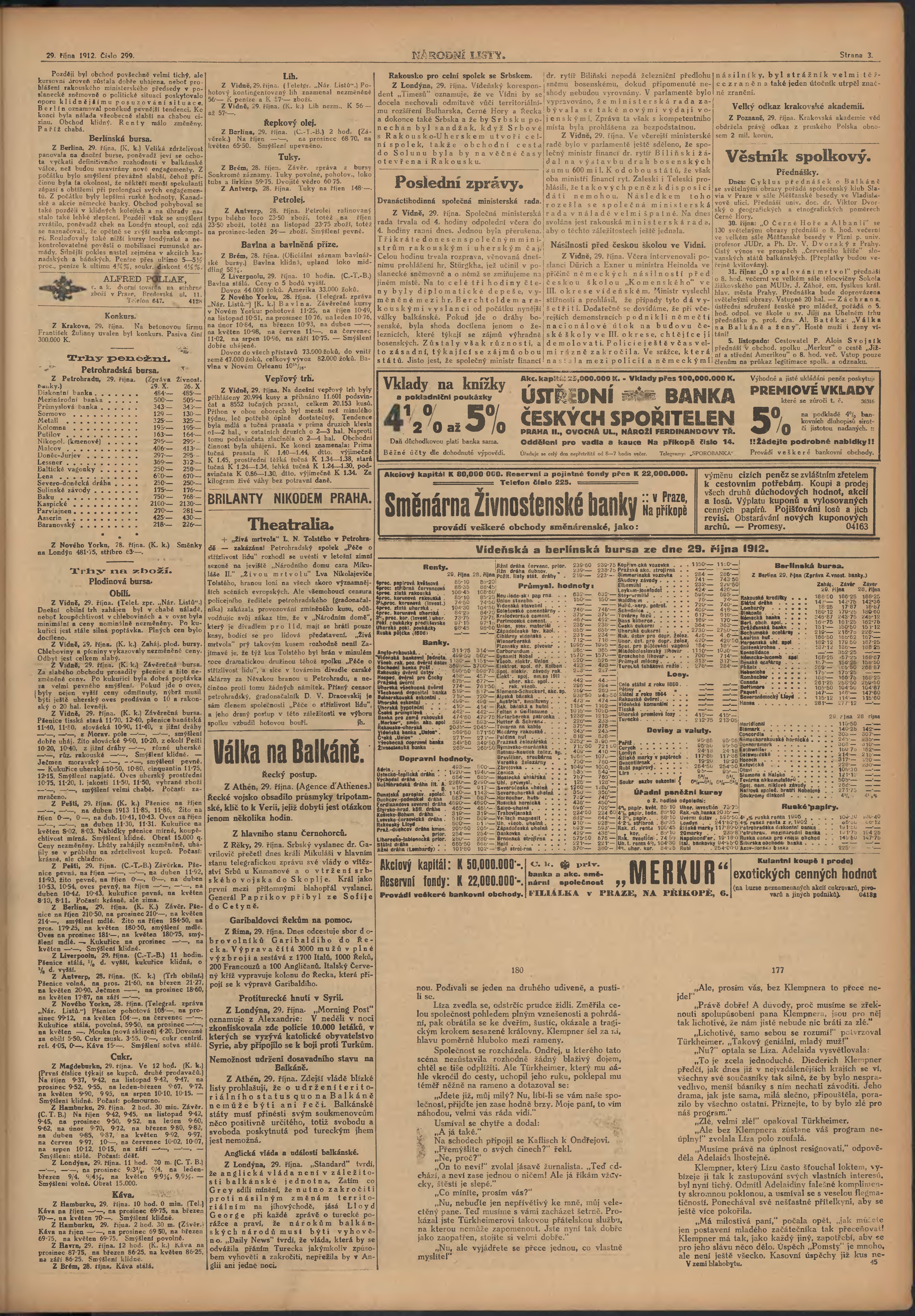 * Datum vydání výtisku: 29.10.1912 Číslo výtisku: 299 Poznámky k výtisku: 2. večerní vydání;