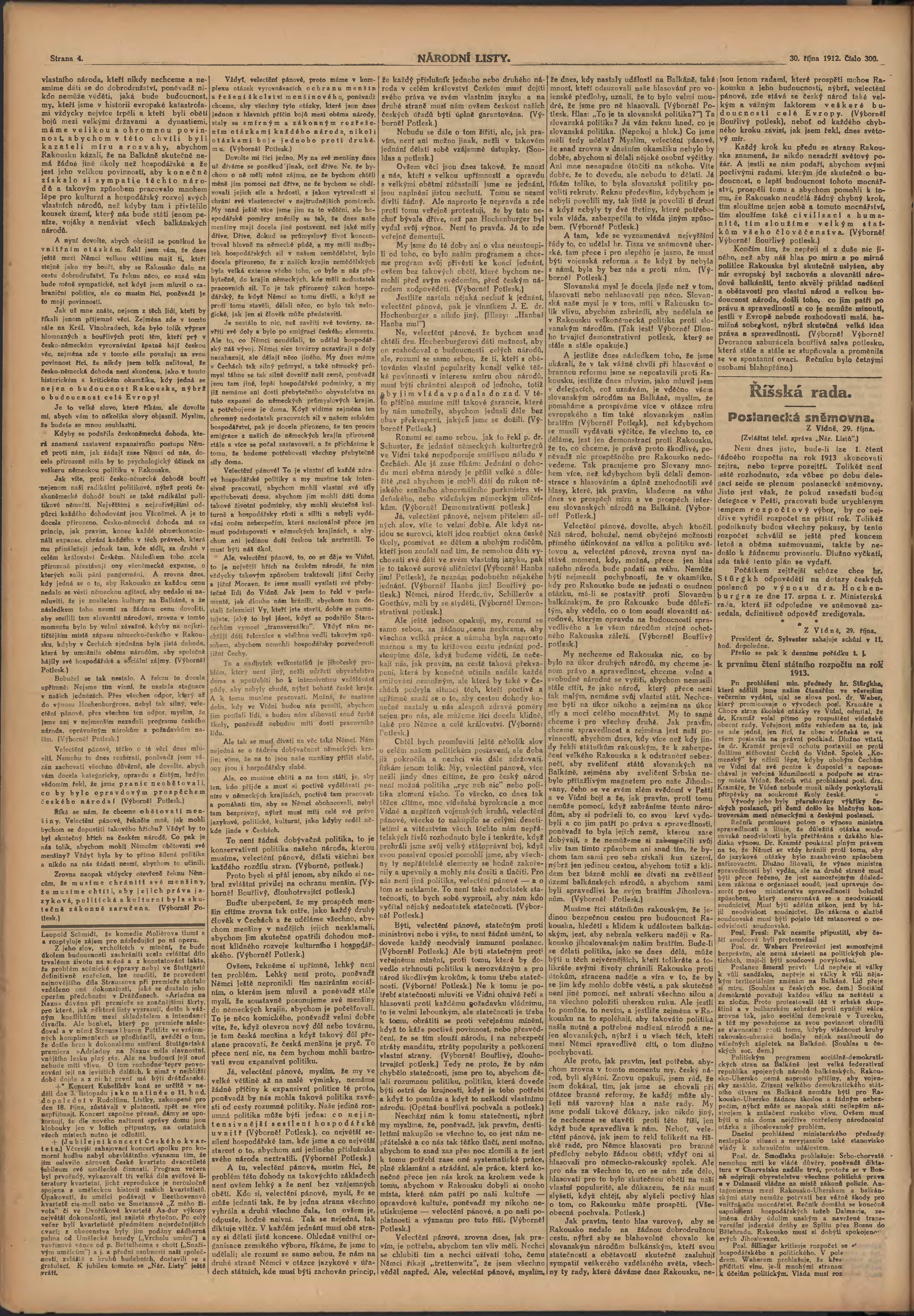 * Datum vydání výtisku: 30.10.1912 Číslo výtisku: 300 Poznámky k výtisku: ranní vydání;