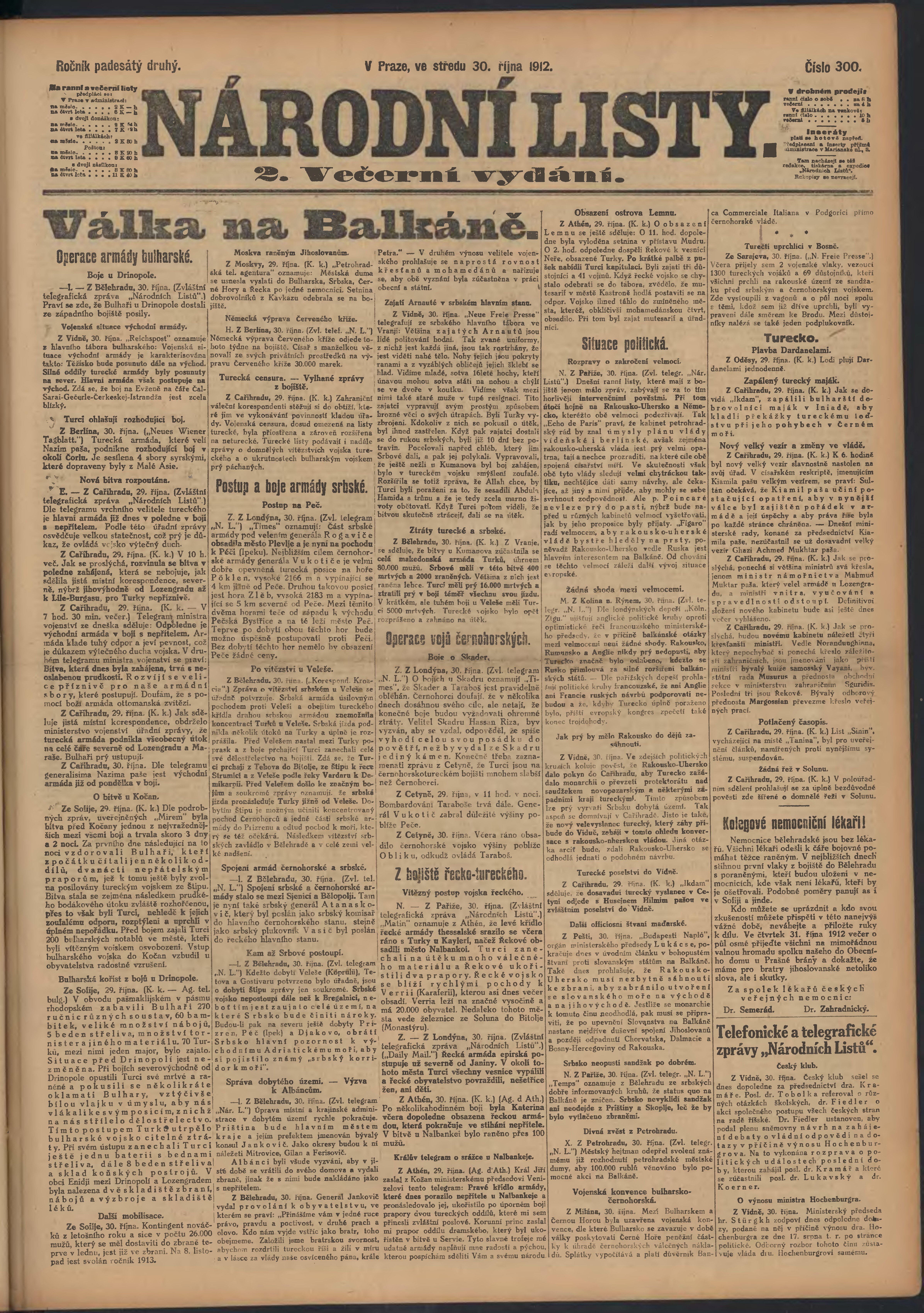 * Datum vydání výtisku: 30.10.1912 Číslo výtisku: 300 Poznámky k výtisku: 2. večerní vydání;