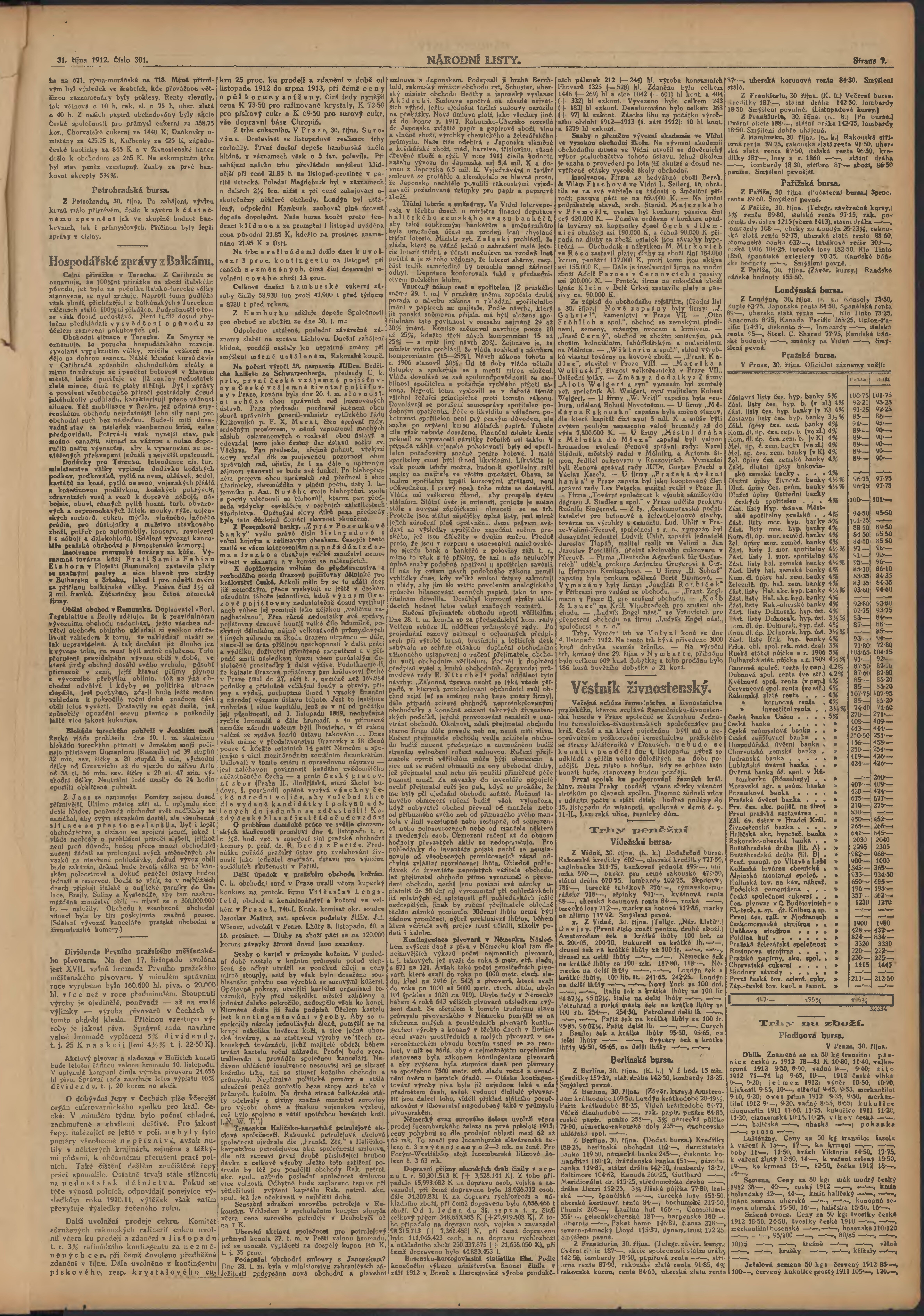 * Datum vydání výtisku: 31.10.1912 Číslo výtisku: 301 Poznámky k výtisku: ranní vydání;