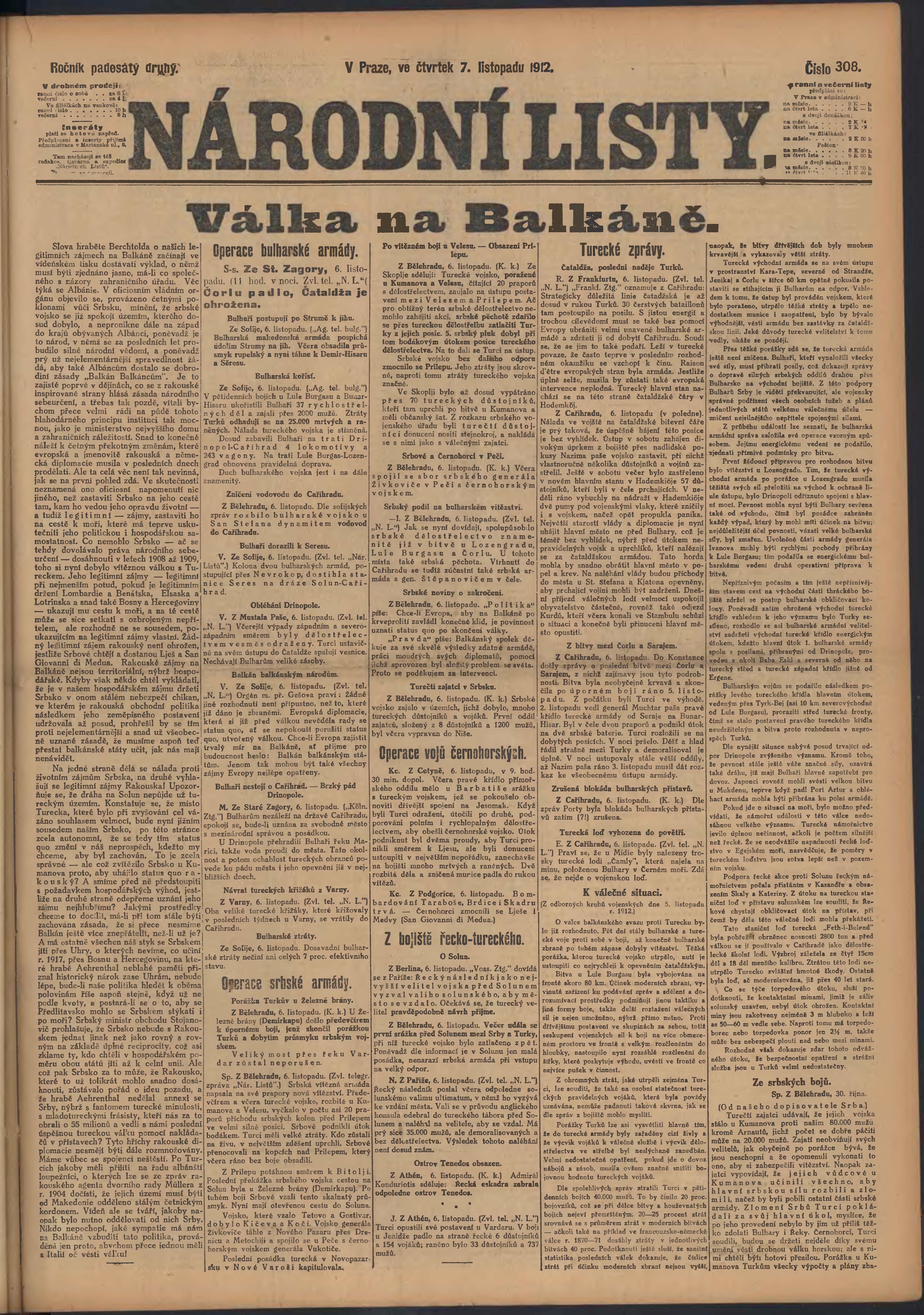 * Datum vydání výtisku: 7.11.1912 Číslo výtisku: 308 Poznámky k výtisku: ranní vydání;